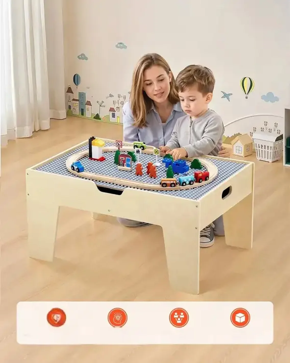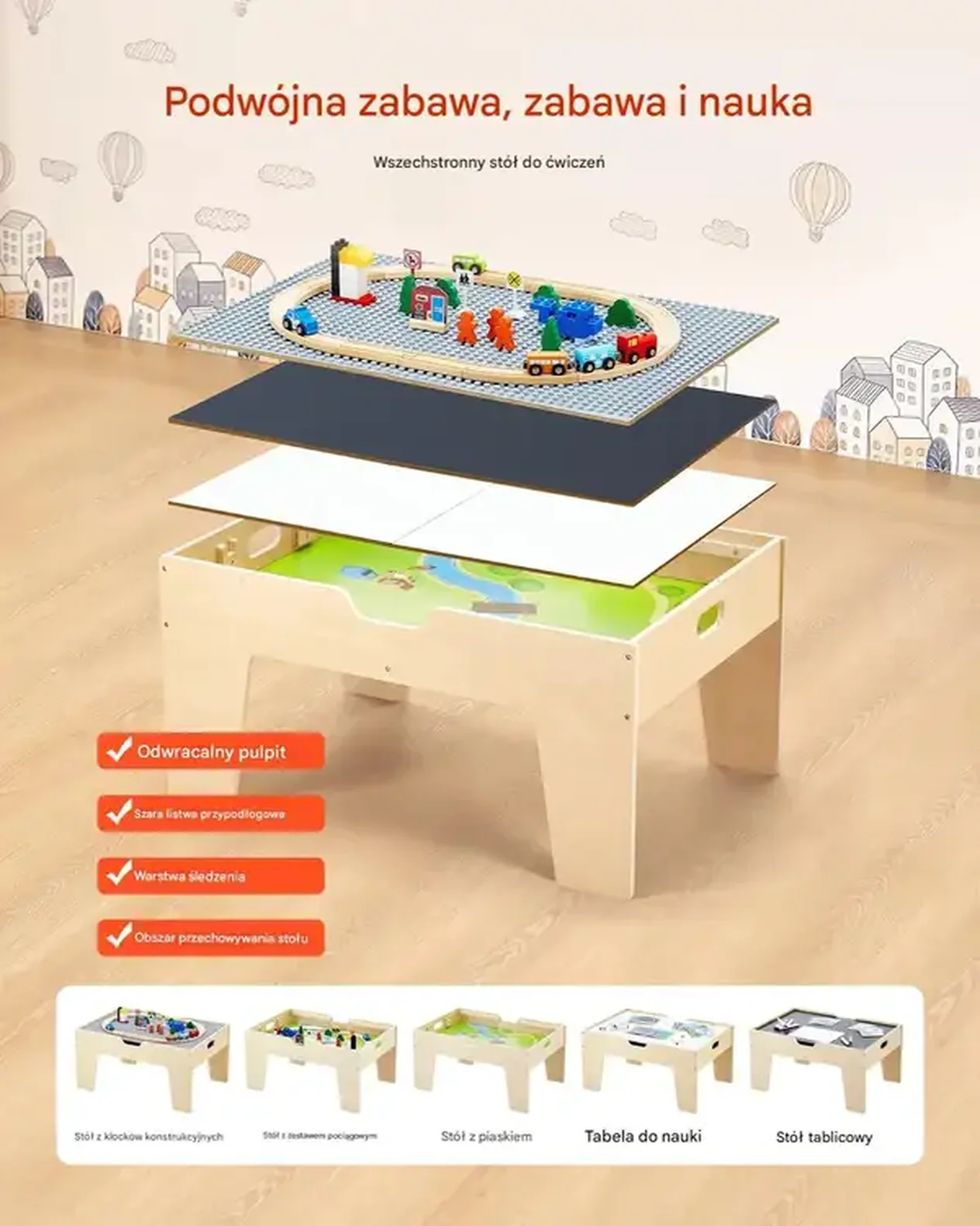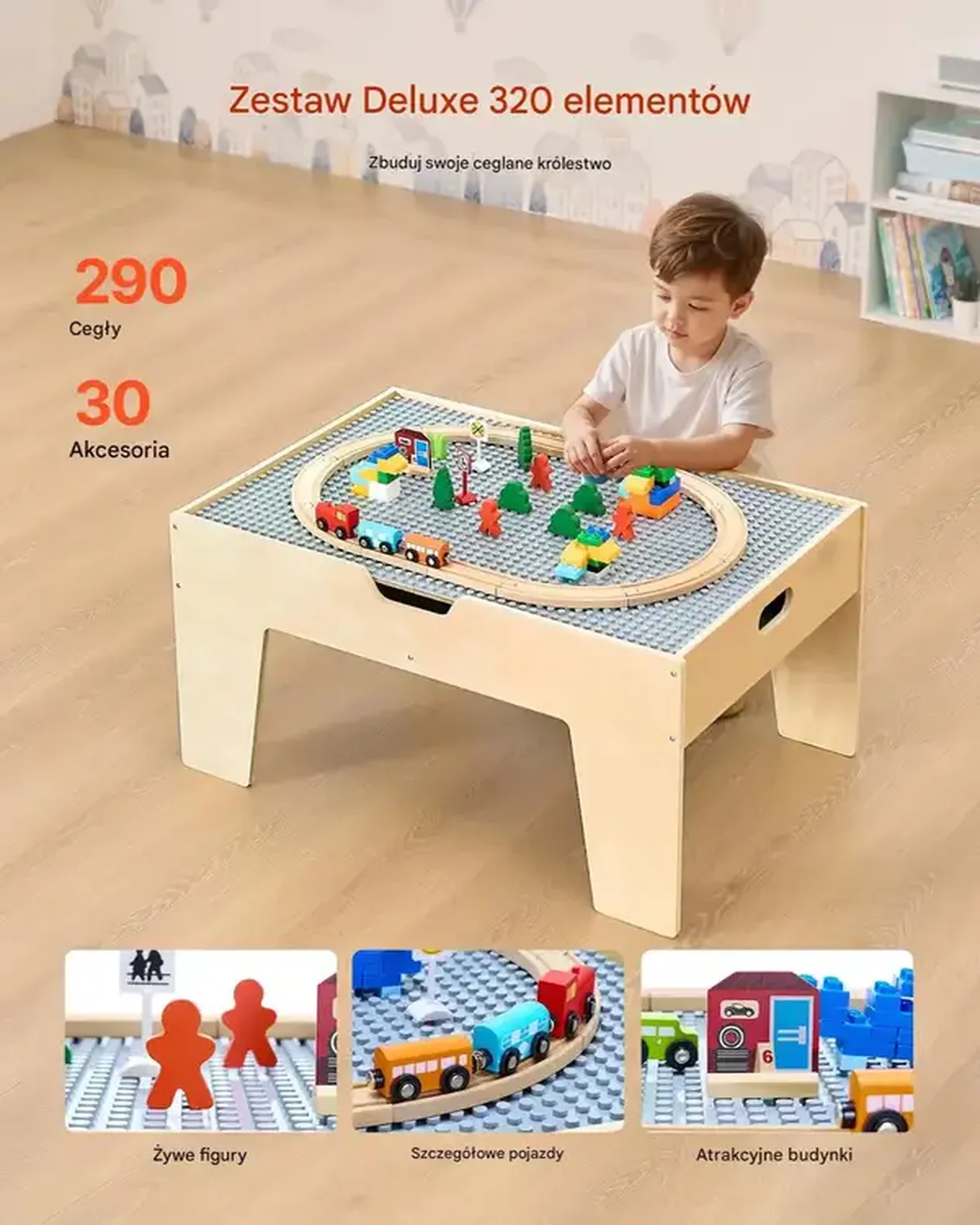 Multifunkcyjny Stół do Zabawy z Pociągami i Klockami – Kreatywna Zabawa i Nauka dla Dzieci