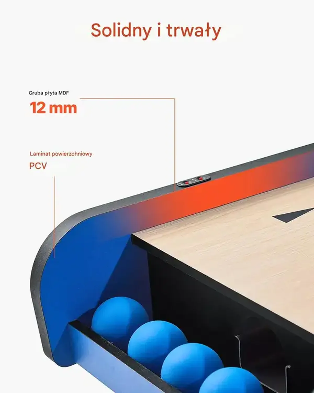 - ✅ Solidna konstrukcja: Płyta MDF o grubości 12 mm pokryta warstwą PVC – odporna na intensywną eksploatację
