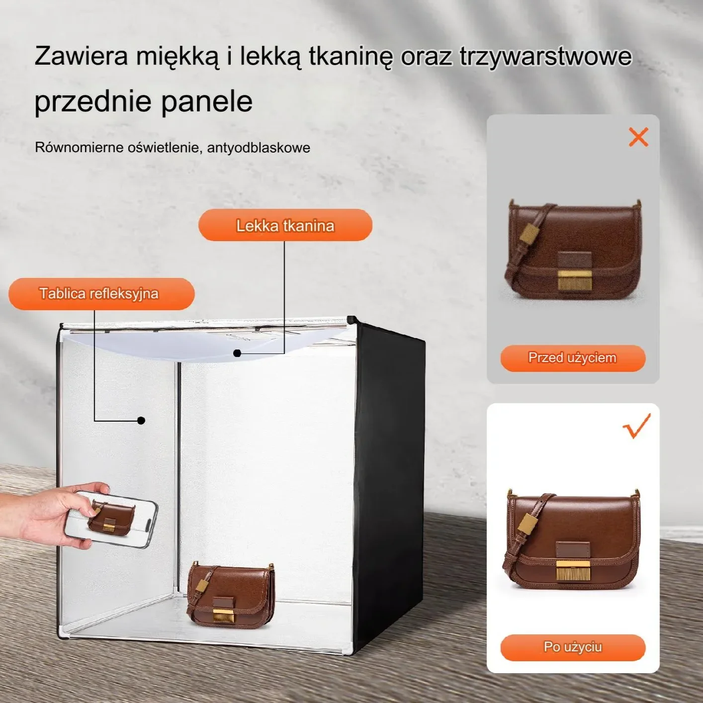 - ✅ Miękka tkanina i panel przedni trójwarstwowy – eliminacja odbić i równomierne rozproszenie światła