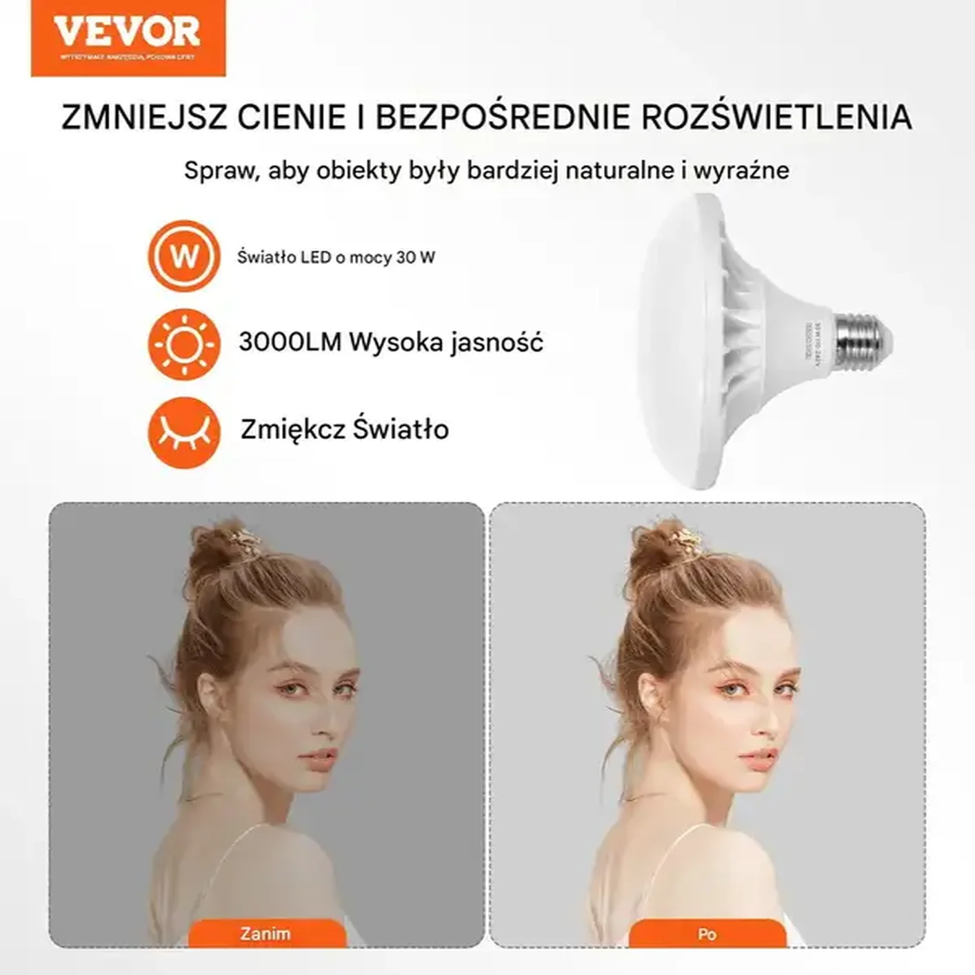 - ➡️Portrety i sesje zdjęciowe – miękkie światło eliminuje cienie i podkreśla detale.