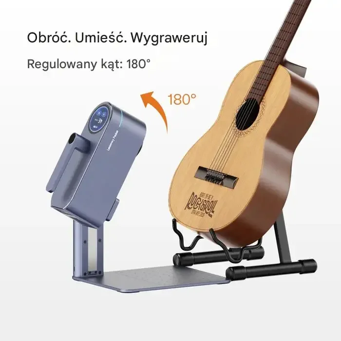 Przy grawerowaniu przedmiotów typu cylindrycznego można regulować kąt urządzenia do 180°, co zwiększa elastyczność w użyciu.