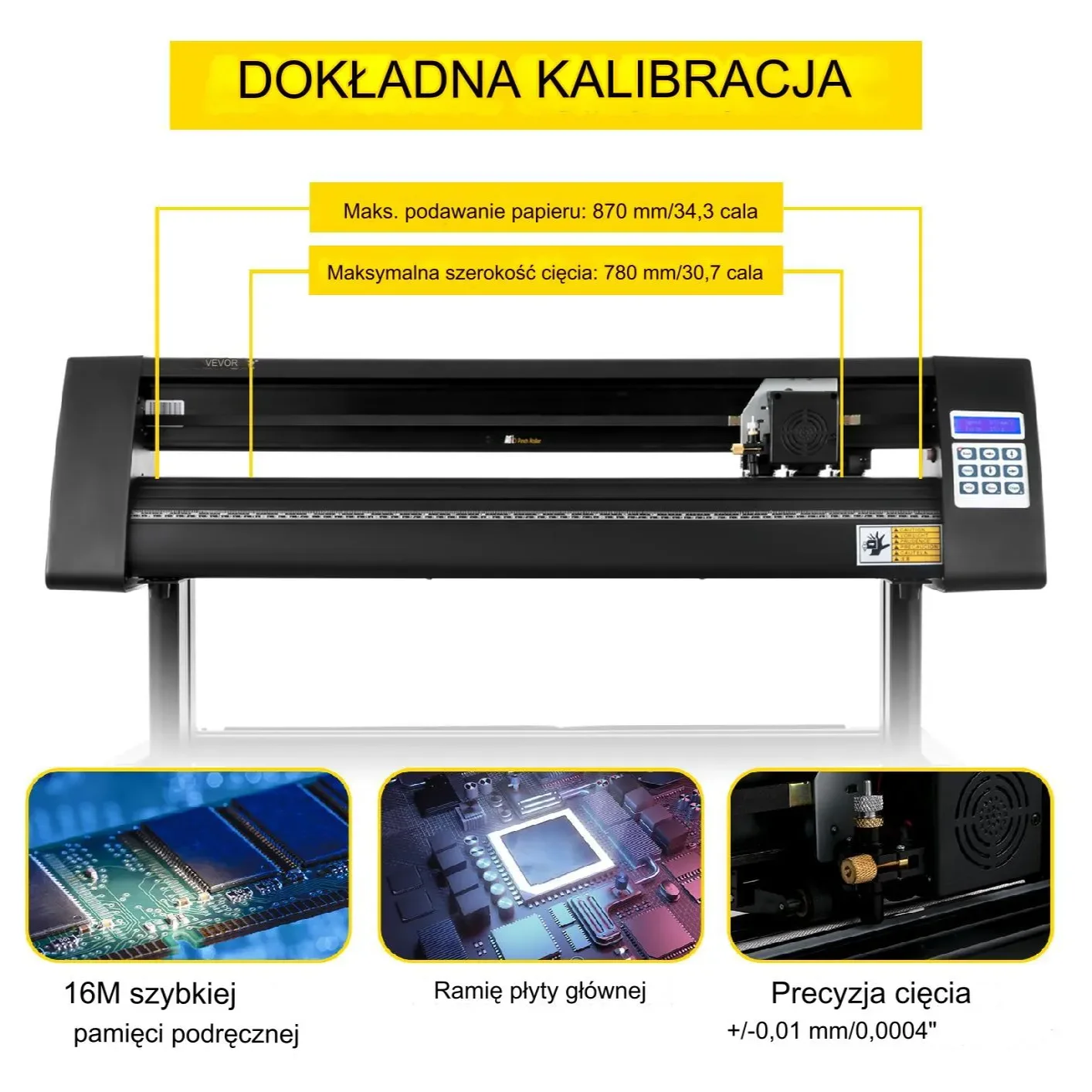 - ✅ Maksymalna szerokość cięcia 630 mm i posuw papieru do 720 mm – idealne do projektów wielkoformatowych.