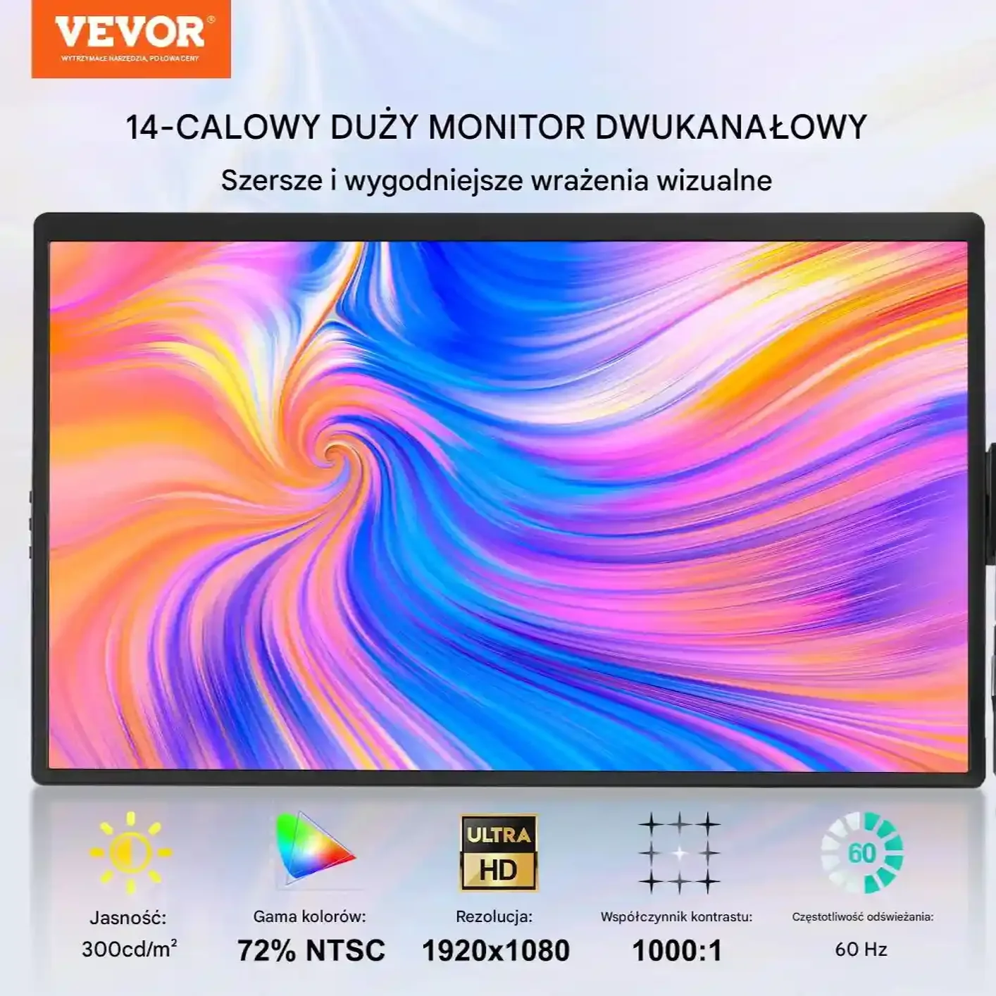 Monitor przenośny 14″ HD 1080p do laptopa – rozszerzenie ekranu USB