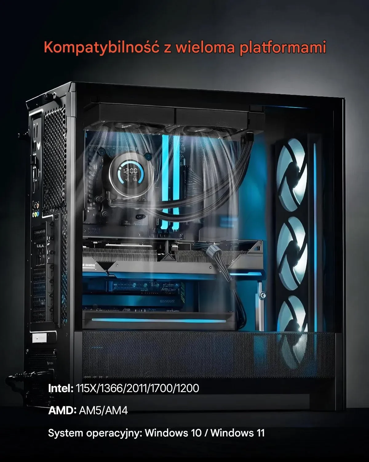 • Uniwersalna kompatybilność: Intel (115X/1366/2011/1700/1200), AMD (AM4/AM5), kompatybilny z Windows 10/11