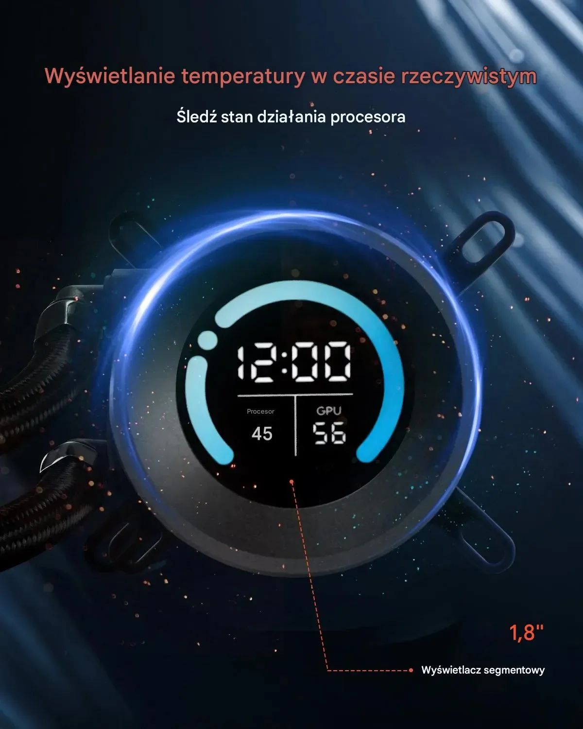 • Wyświetlacz wizualny: 1,8” ekran segmentowy pokazujący temperaturę CPU i GPU w czasie rzeczywistym