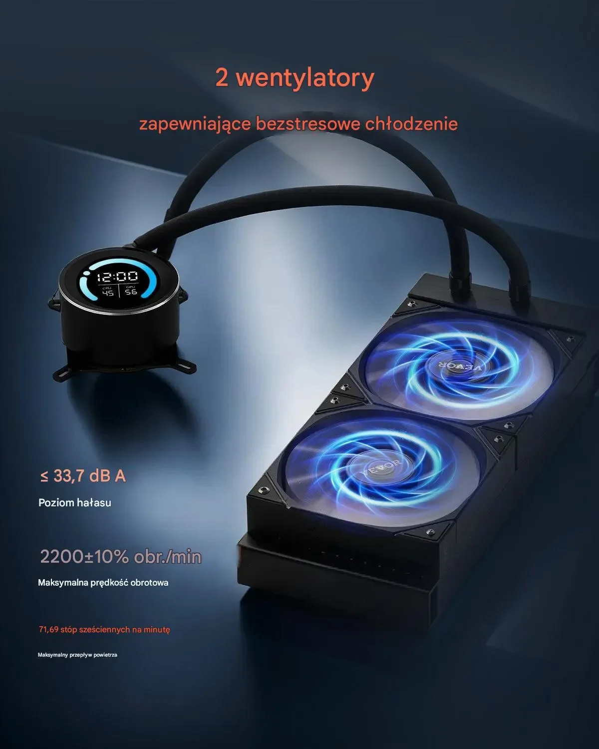 • System PWM: Automatyczne dostosowanie prędkości wentylatora i pompy do temperatury CPU – optymalne chłodzenie i niski poziom hałasu