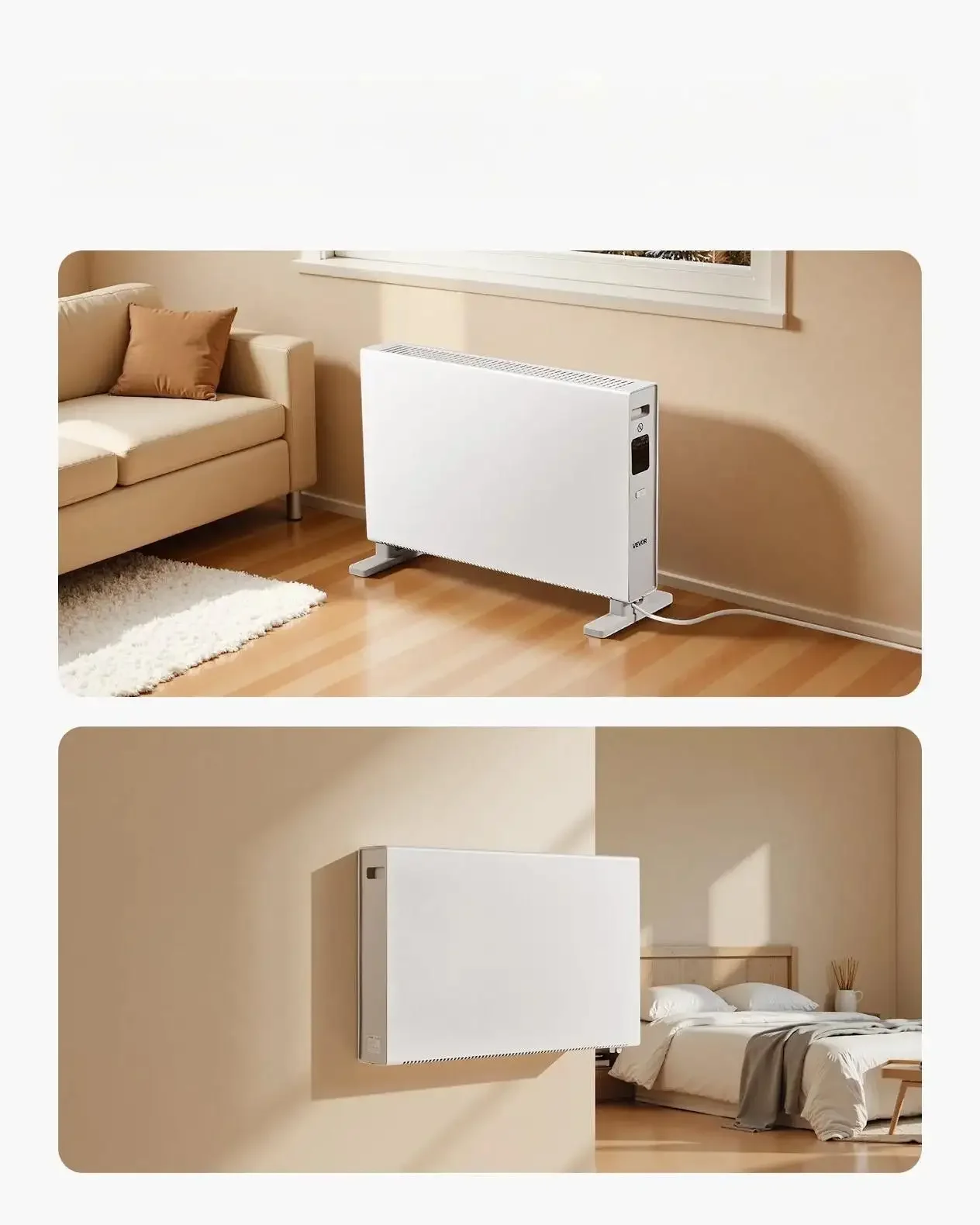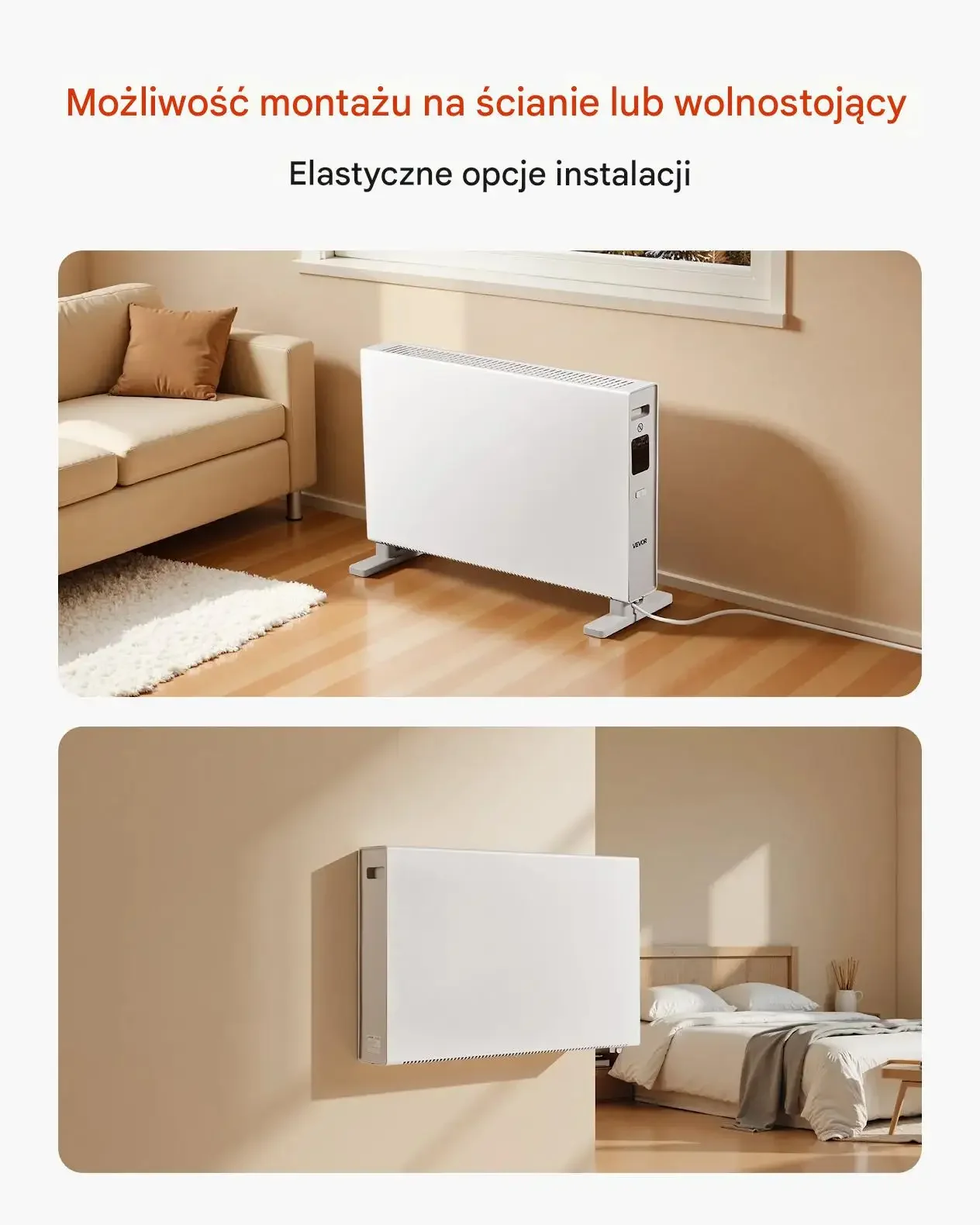 Grzejnik konwektorowy 2000W panelowy 3 tryby pilot – ściana/podłoga