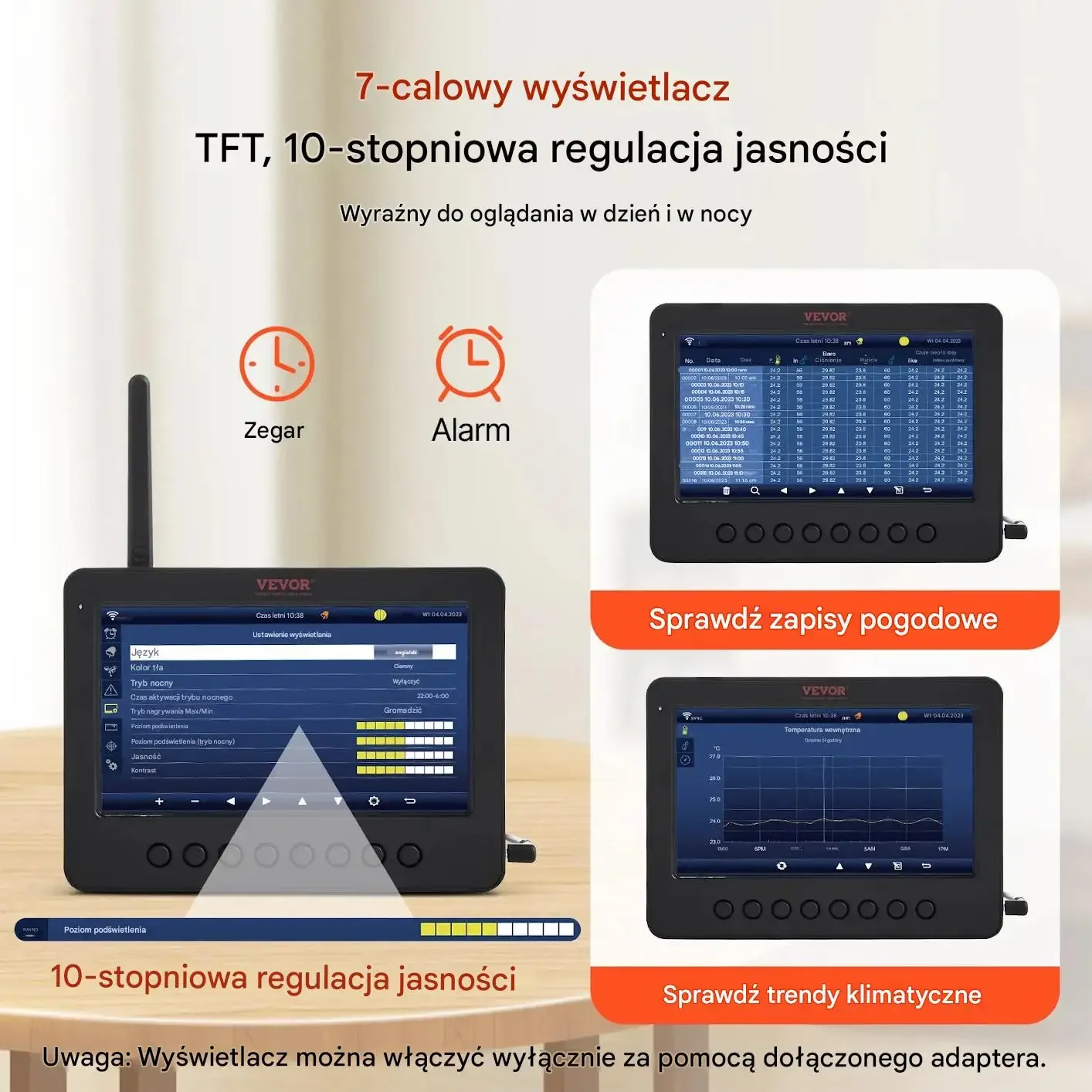 • ➡️ Estetyczny wyświetlacz: Duży, kolorowy ekran TFT z funkcją zegara i alarmu doskonale wkomponuje się w każde wnętrze.