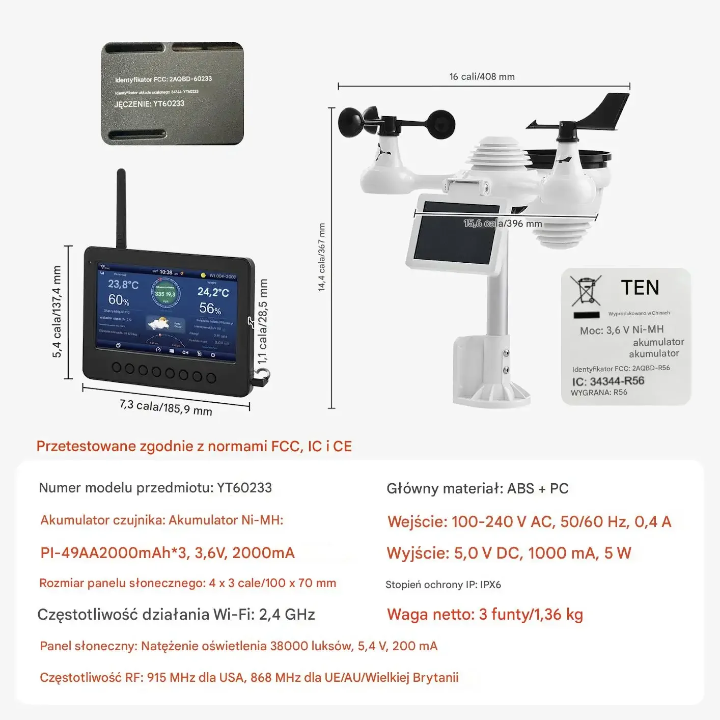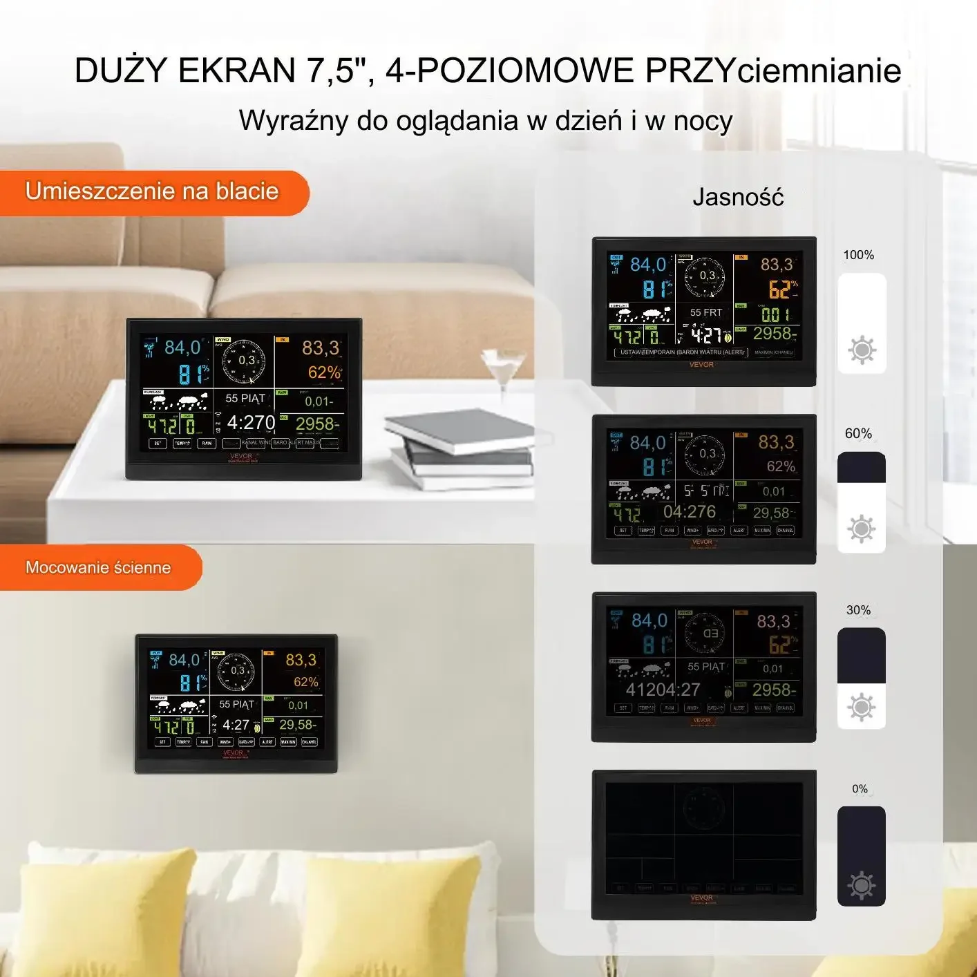 - Stacja pogodowa z wyświetlaczem 7,5 cala.