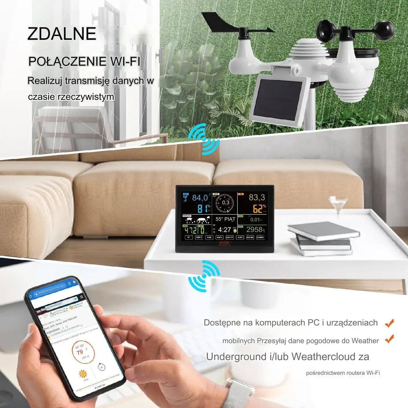 - ❇️Wi-Fi i aplikacje: Integracja z Weather Underground i WeatherCloud do zdalnego monitorowania na smartfonie.