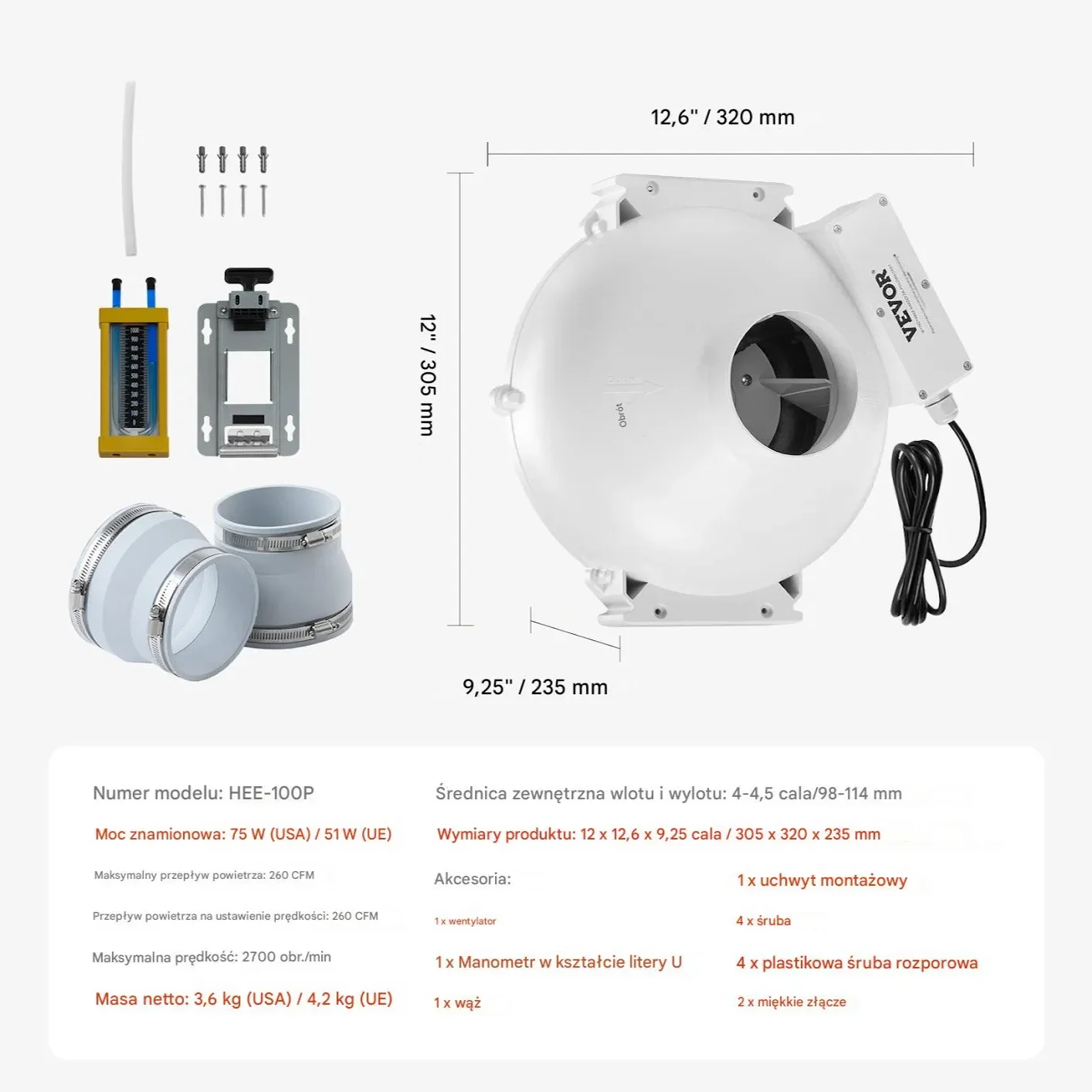 - ✅ Łatwa i szybka instalacja – Dołączone złączki pozwalają na bezproblemowy montaż z rurami PVC, eliminując problemy z dopasowaniem.