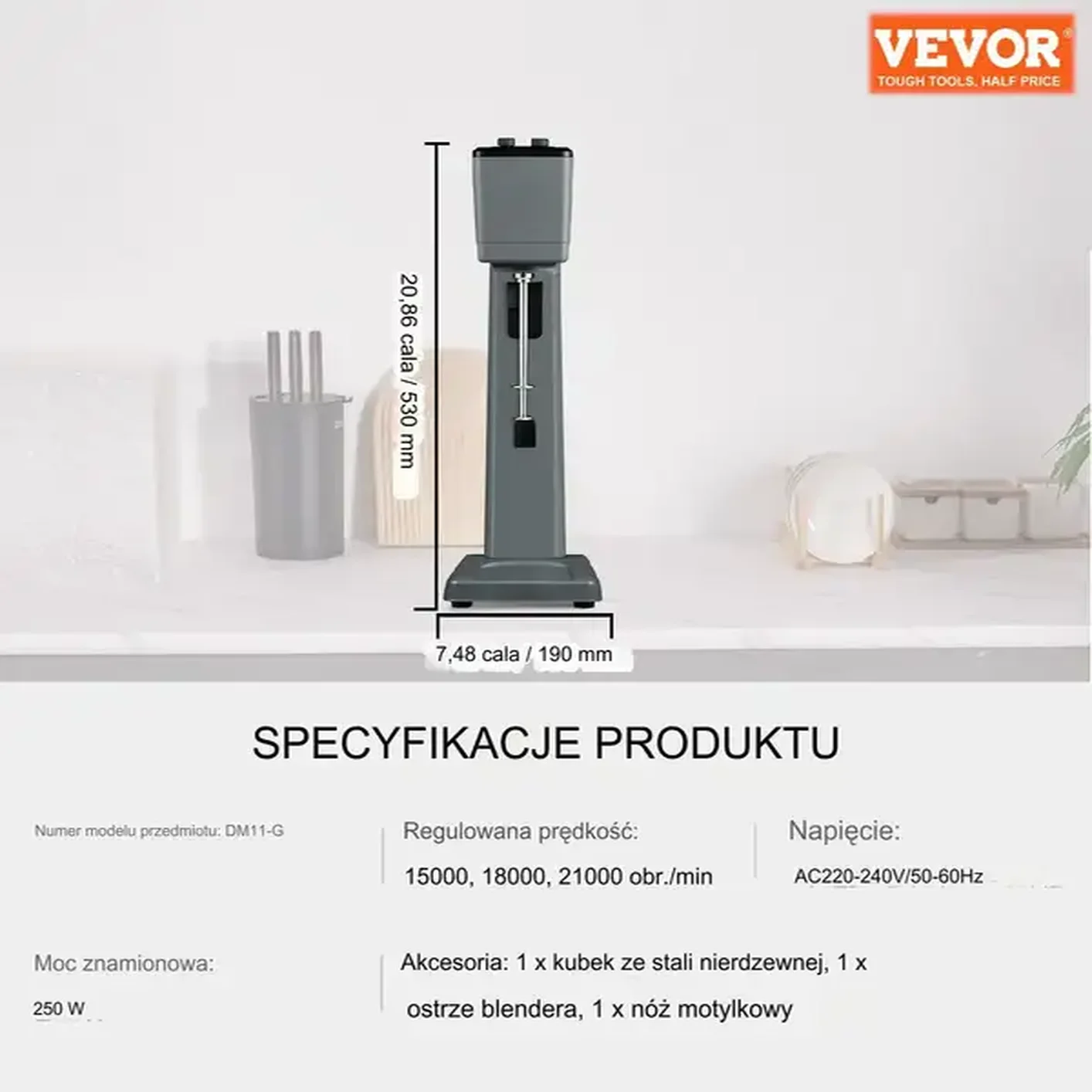 Urządzenie oferuje trzy prędkości miksowania: 15000, 18000 i 21000 obr./min. Dzięki temu poradzi sobie z różnymi rodzajami napojów, od koktajli mlecznych po gęste pasty. Idealny do różnorodnych zastosowań.