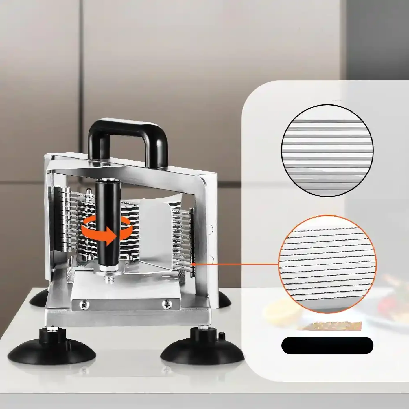 - ✅ Wydajne i równomierne krojenie – ostre, ząbkowane ostrza ze stali nierdzewnej 420J1, precyzyjne plastry o grubości 6,35 mm
