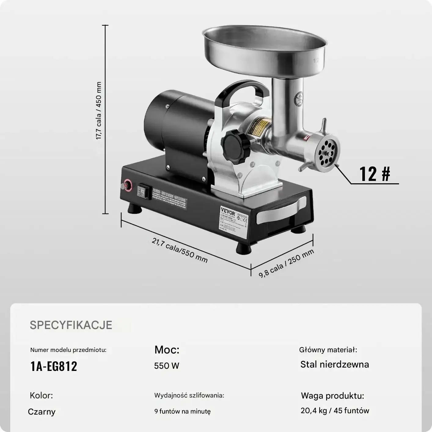 - ✅ Szybkie mielenie mięsa: Wydajność do 2,7 kg/min, ciągła praca bez przestojów