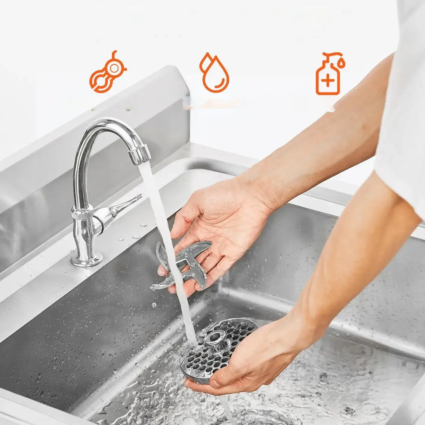 - ✅ 2 sitka o średnicy oczek: 5 mm i 8 mm – do różnych rodzajów mięs