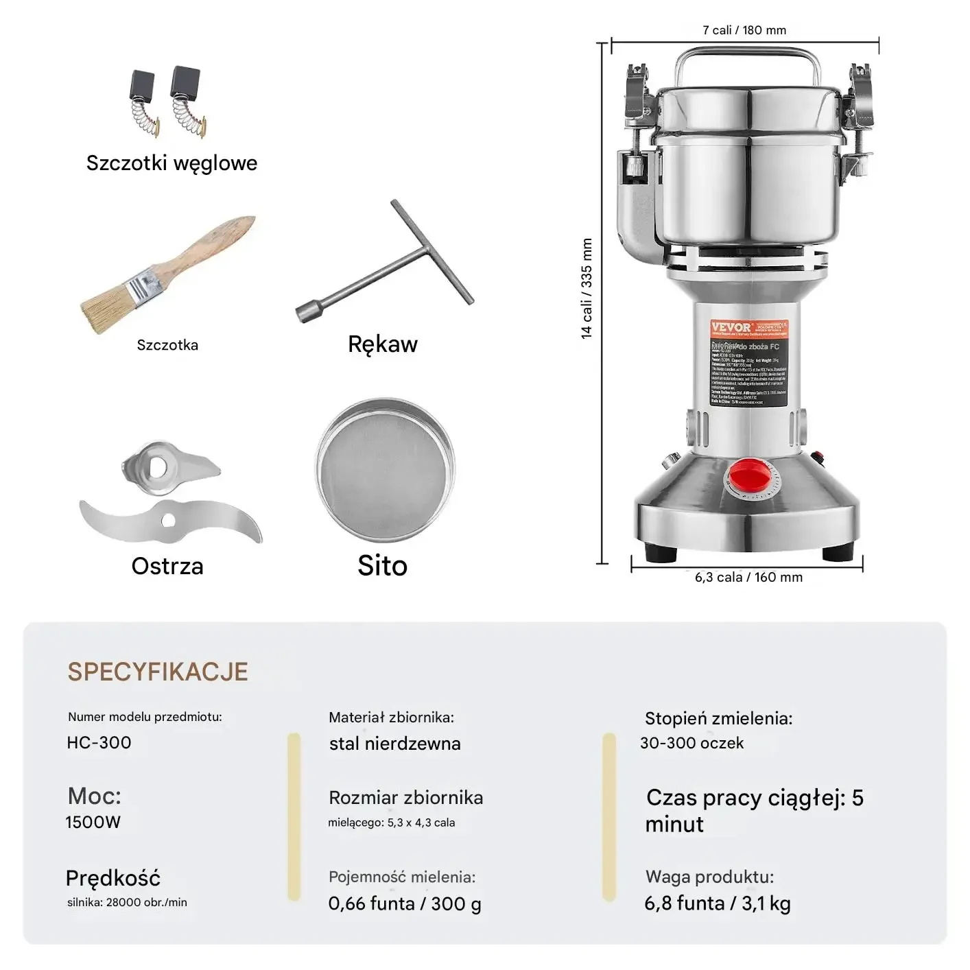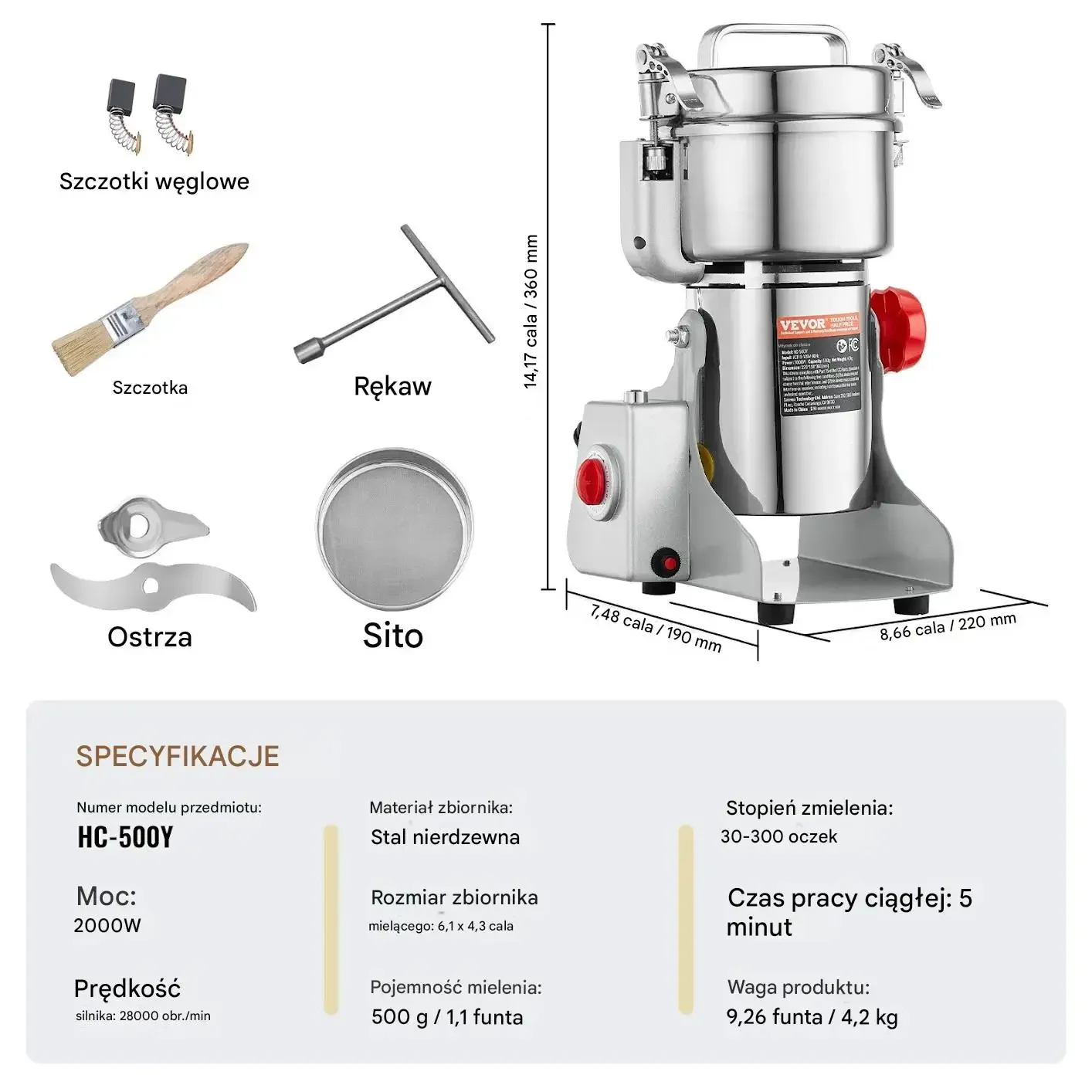 Elektryczny Młynek do Przypraw i Zbóż 3000 W – Profesjonalne Mielenie Suchych Składników