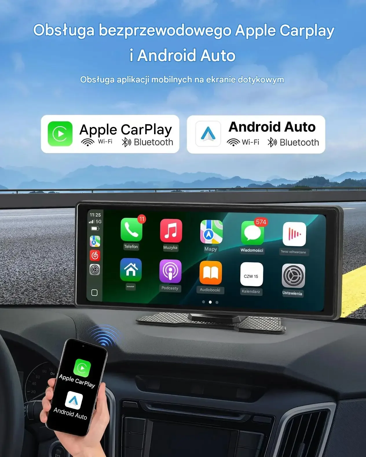 Bezprzewodowy Ekran Samochodowy 10 Cali CarPlay Android Auto – Twój Nowoczesny Asystent Kierowcy