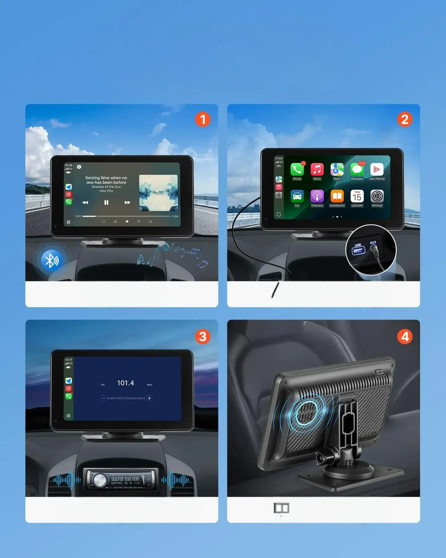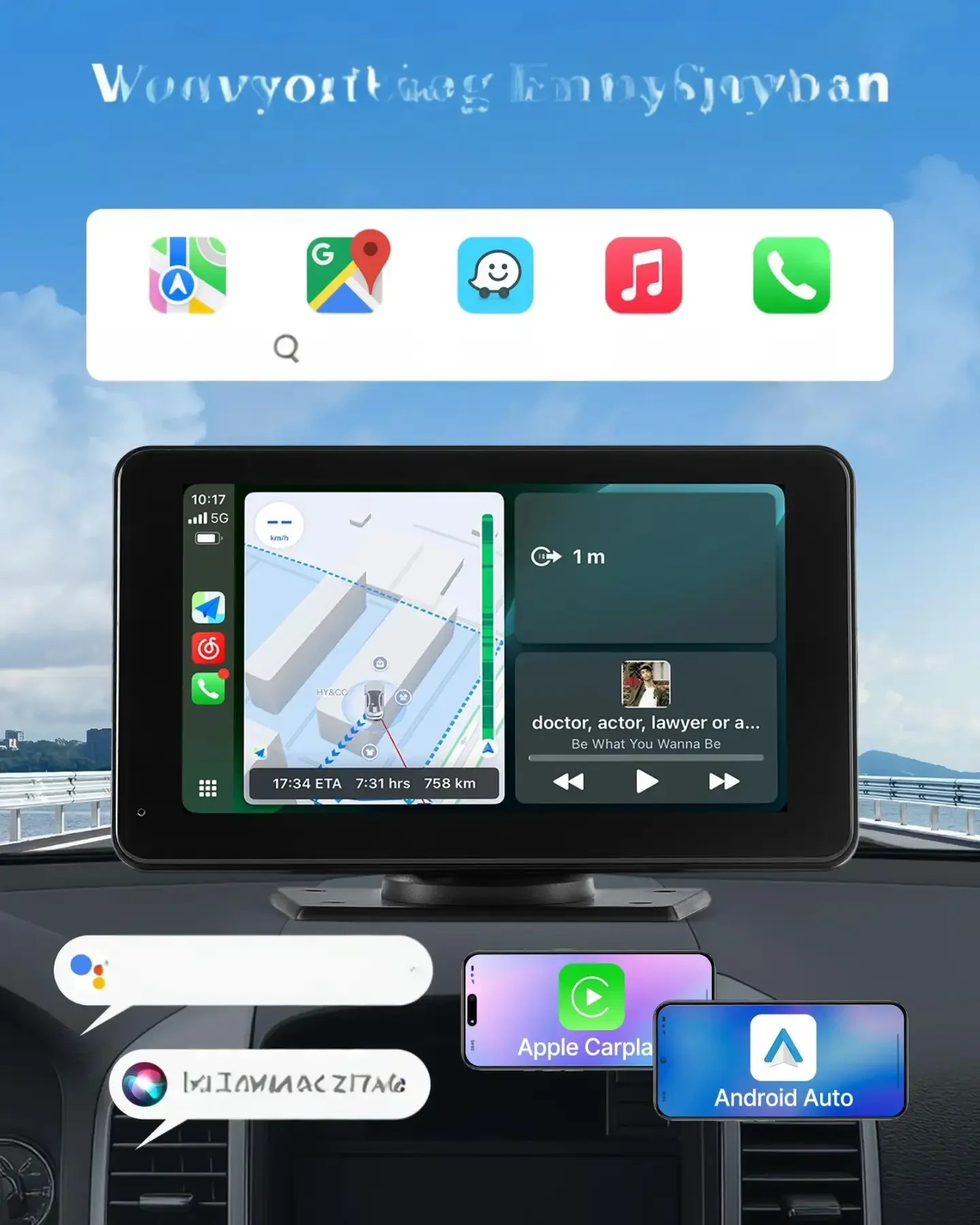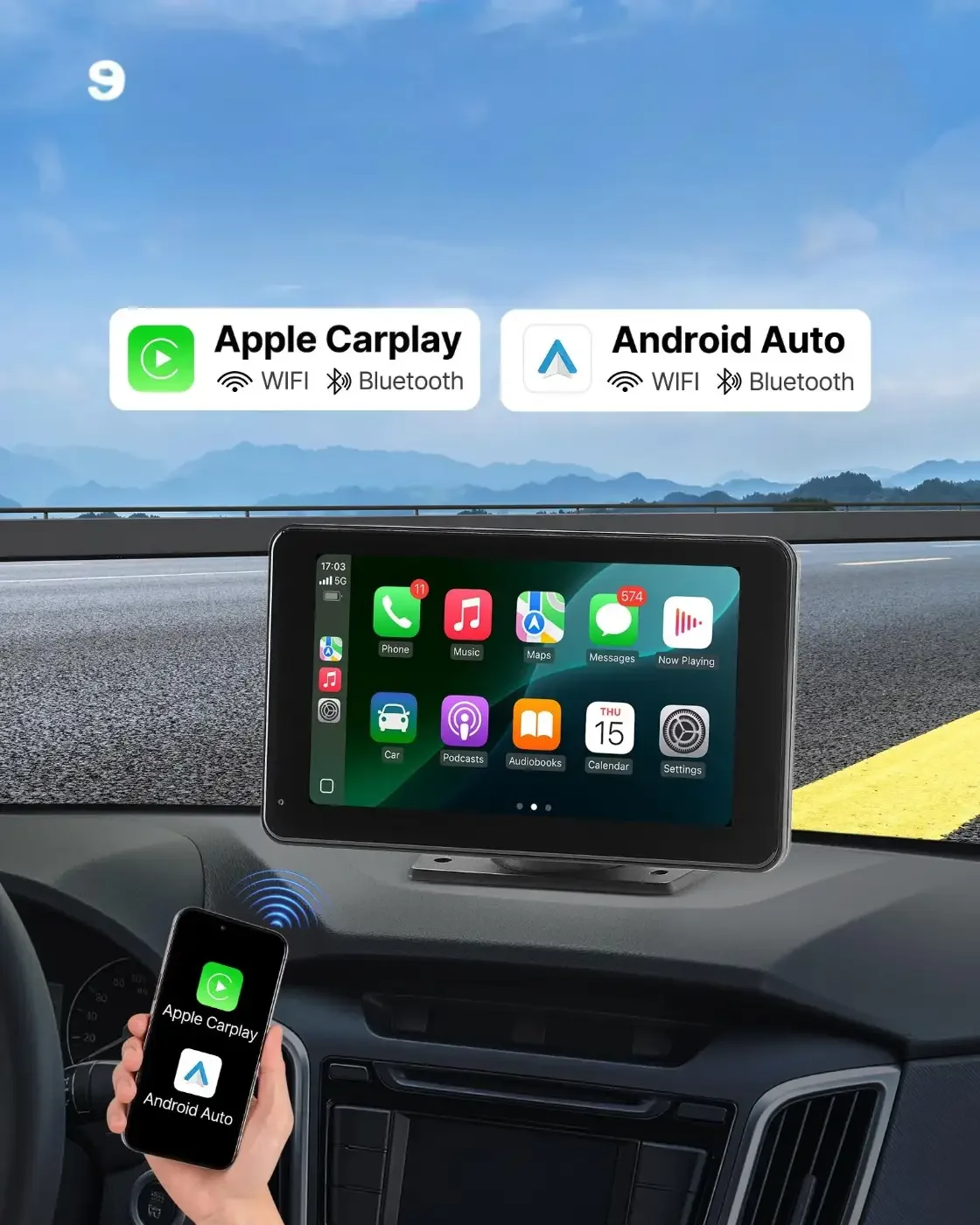 Bezprzewodowy Ekran Samochodowy 7 Cali CarPlay Android Auto z Kamerą Cofania – Nowoczesne Centrum Multimedialne