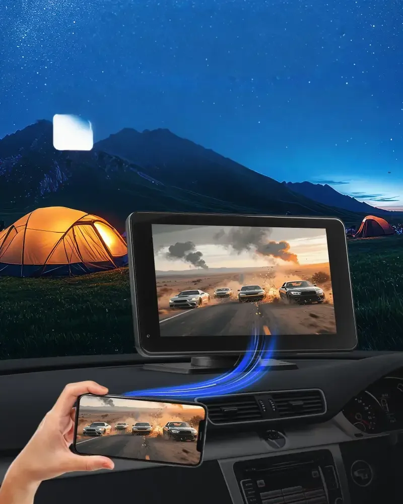 Urządzenie świetnie sprawdza się jako mobilne centrum rozrywki podczas przerw w podróży, na przykład na kempingu. Duży i czytelny wyświetlacz umożliwia strumieniowe przesyłanie obrazu z telefonu bezpośrednio na ekran główny, pozwalając na komfortowe oglądanie ulubionych filmów i multimediów w wysokiej jakości wewnątrz pojazdu.