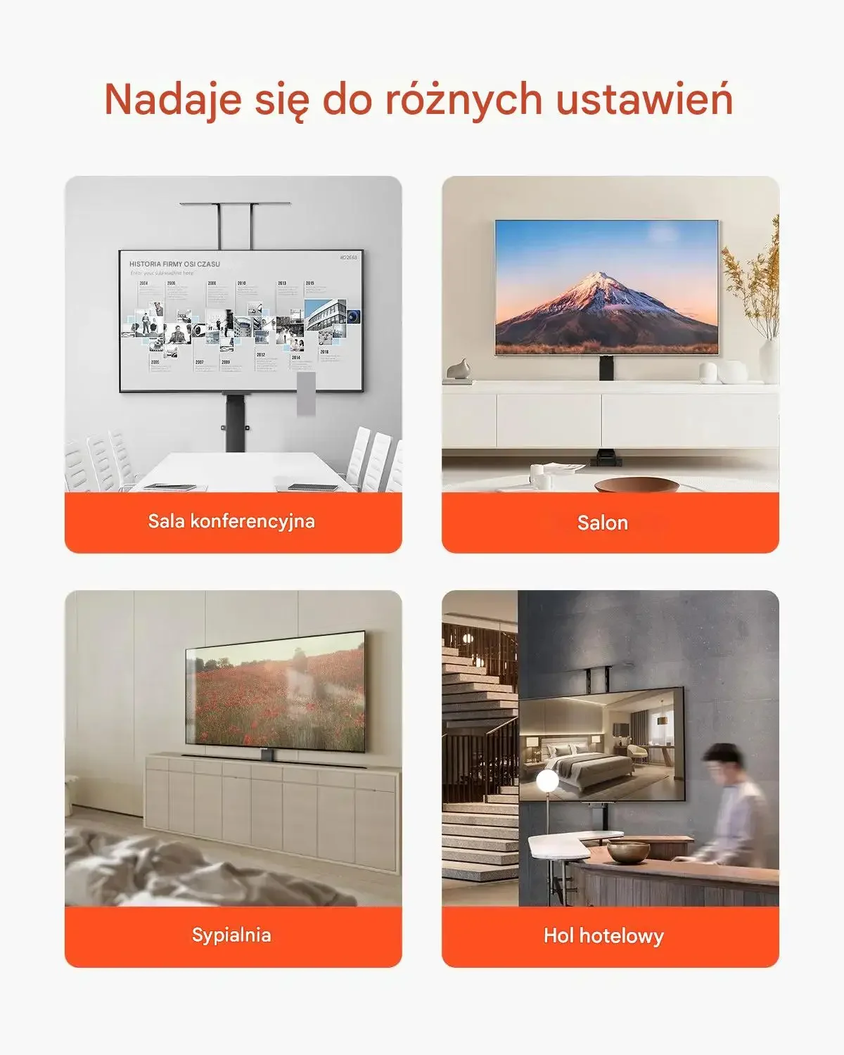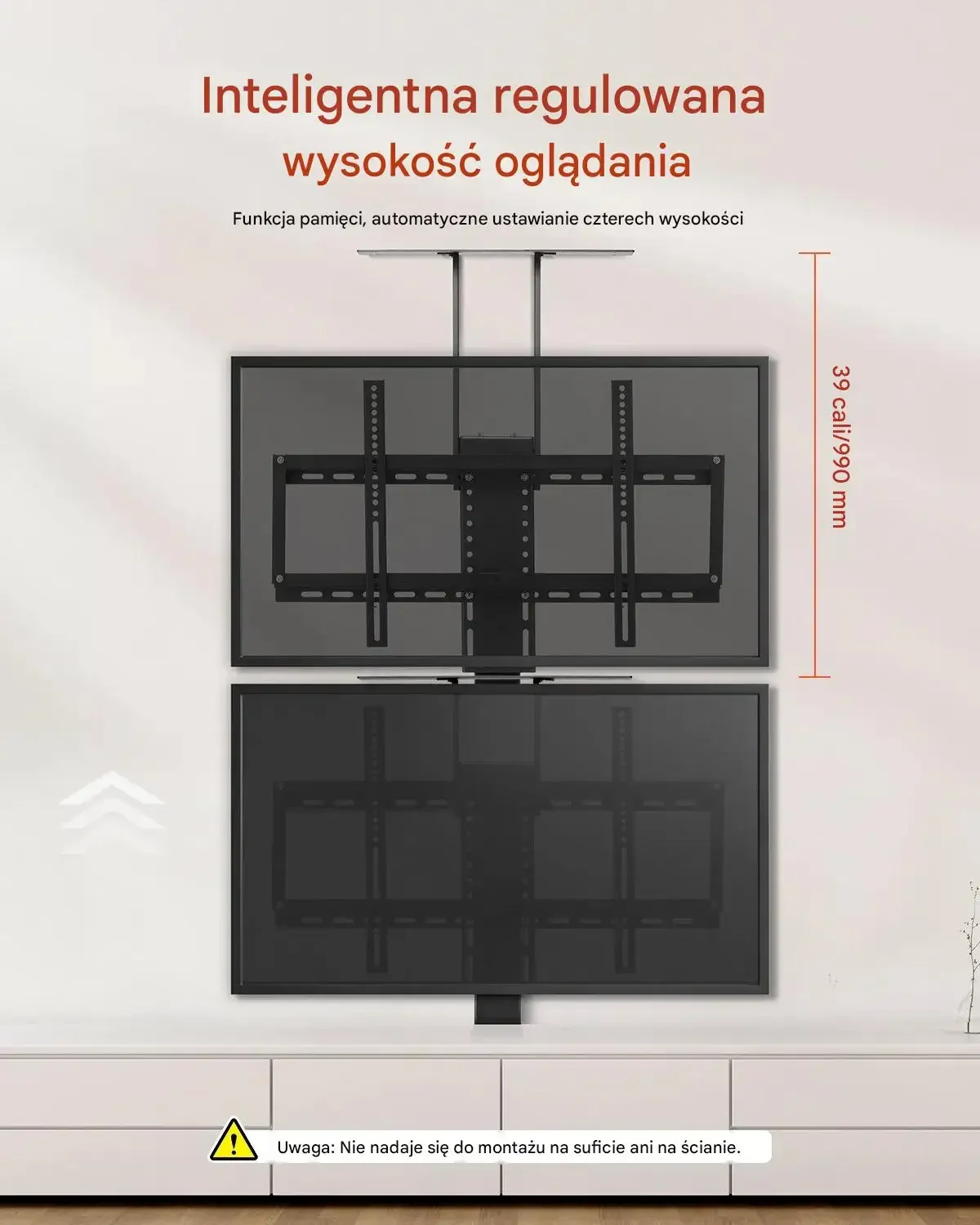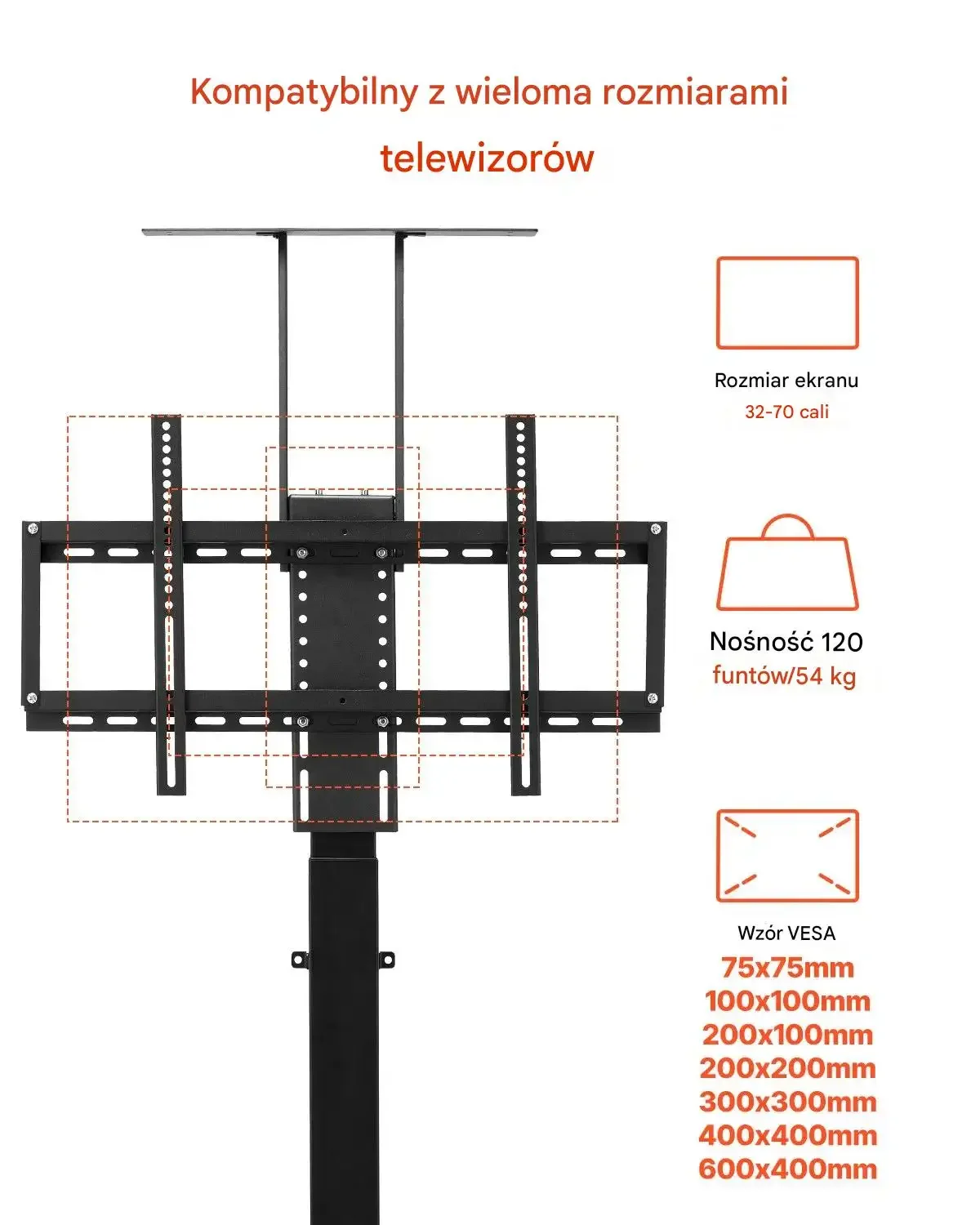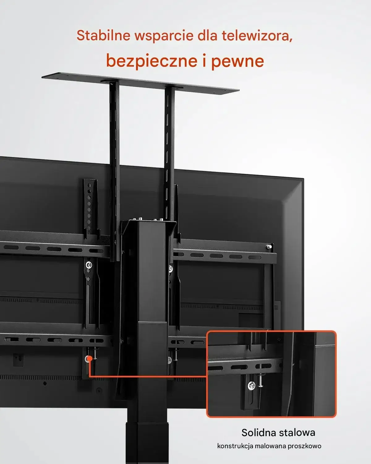 Uchwyt TV podłogowy 32–70″ elektryczny lift stand regulowany do salonu