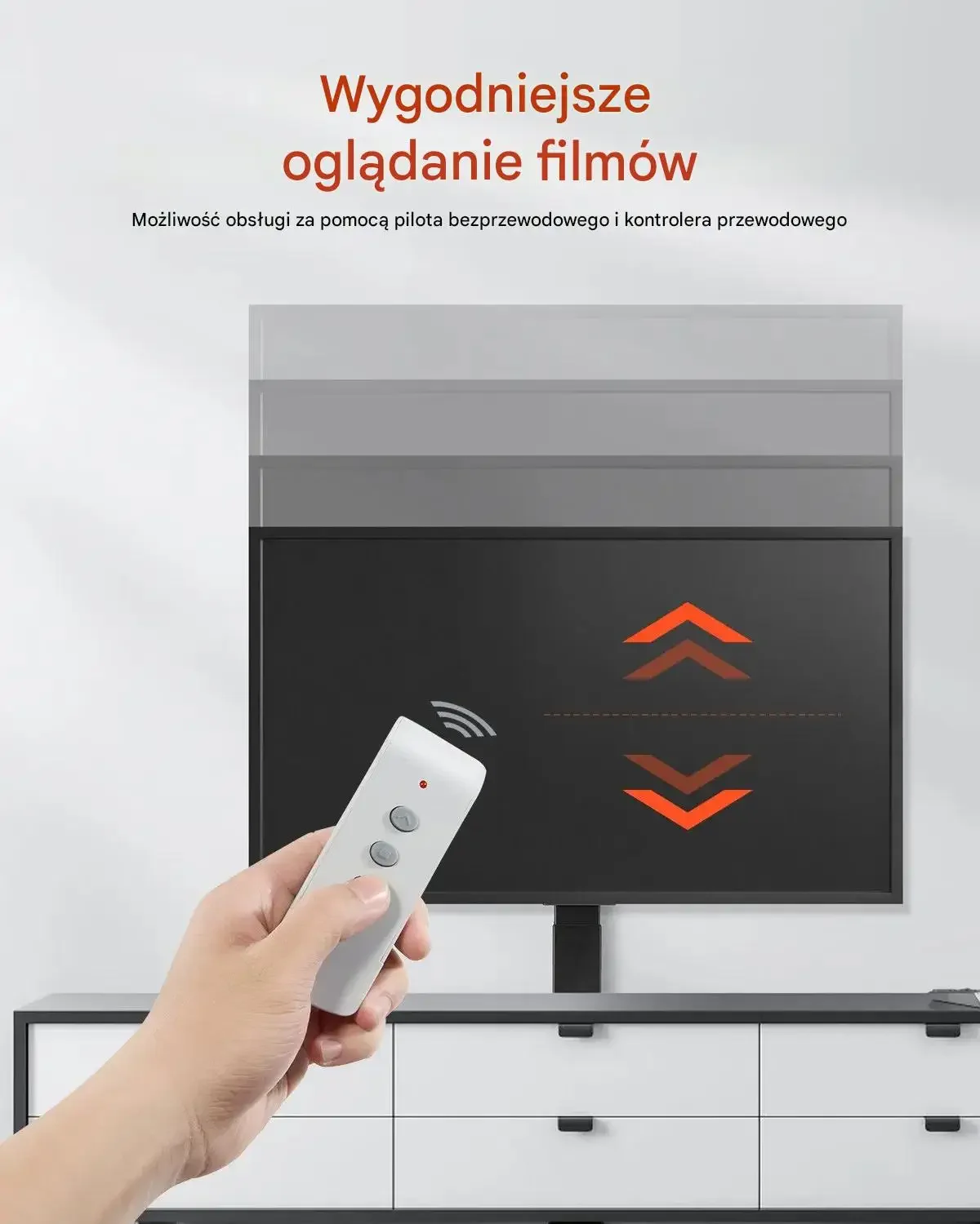 - ➡️ Komfort użytkowania: Płynna regulacja wysokości za pomocą pilota zapewnia idealny kąt oglądania.