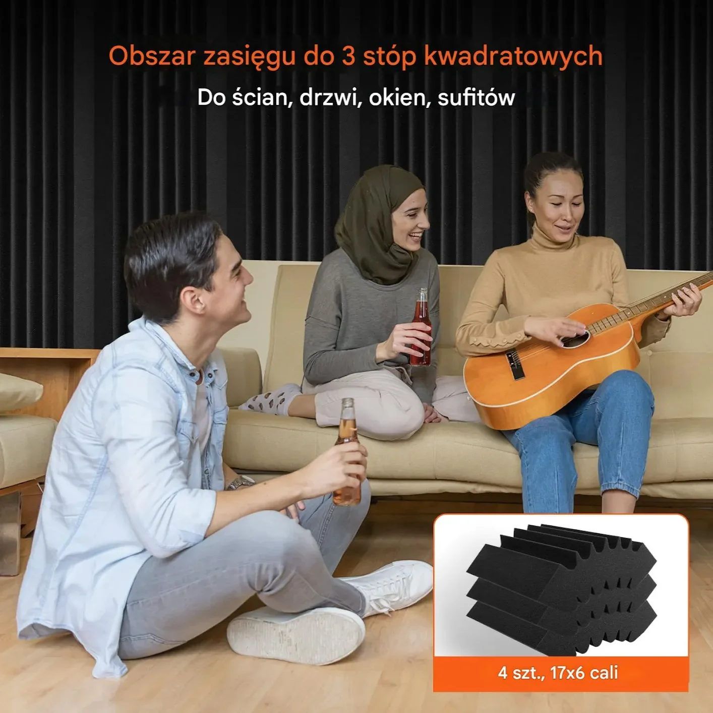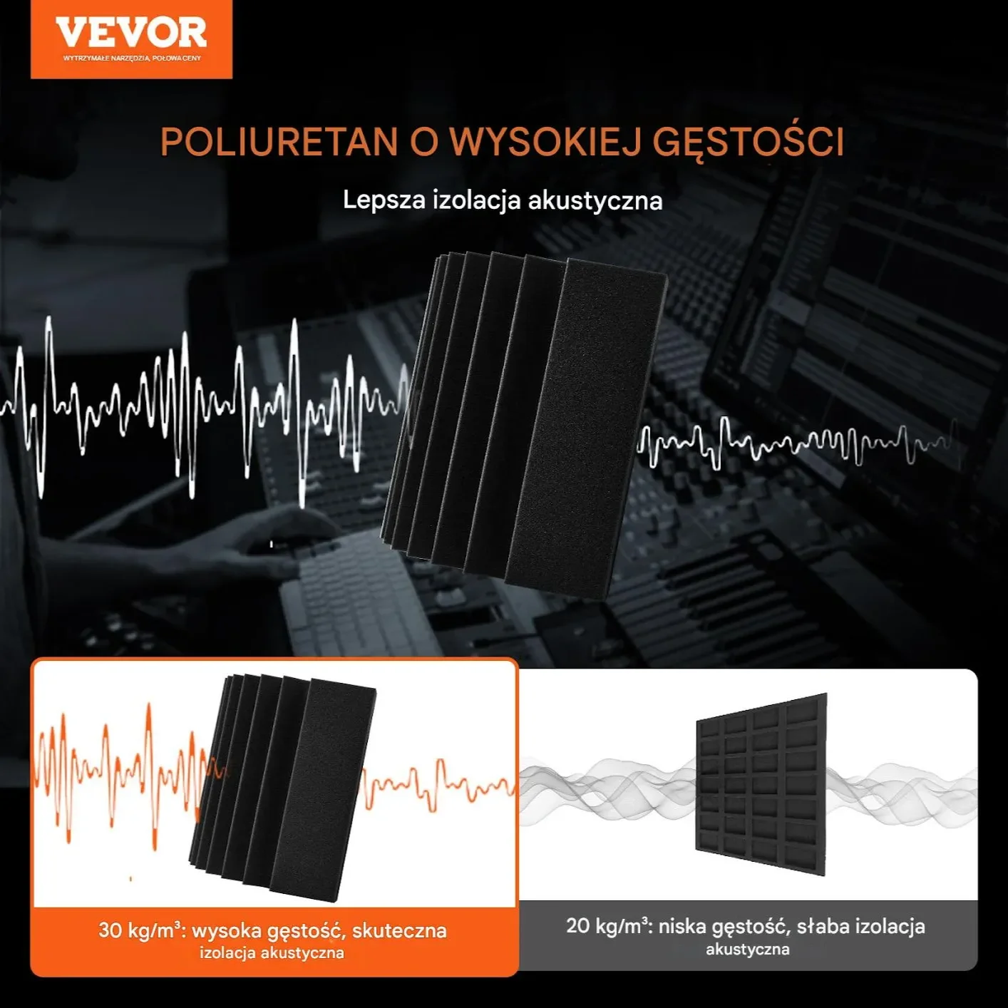 - ✅ 4 x panel akustyczny z pianki o wymiarach 42 x 16 x 30 cm