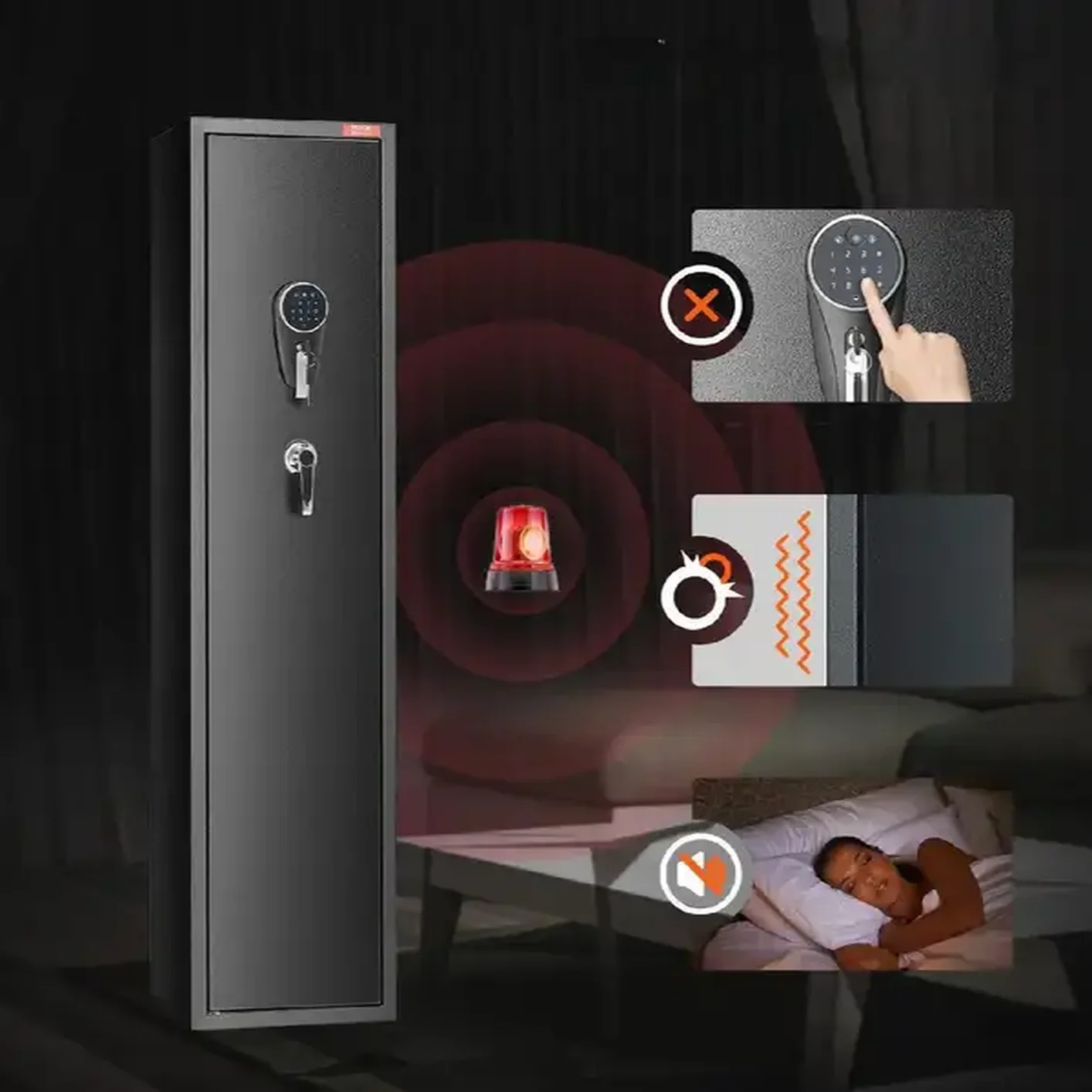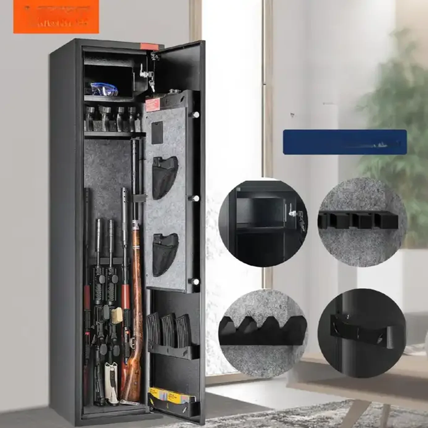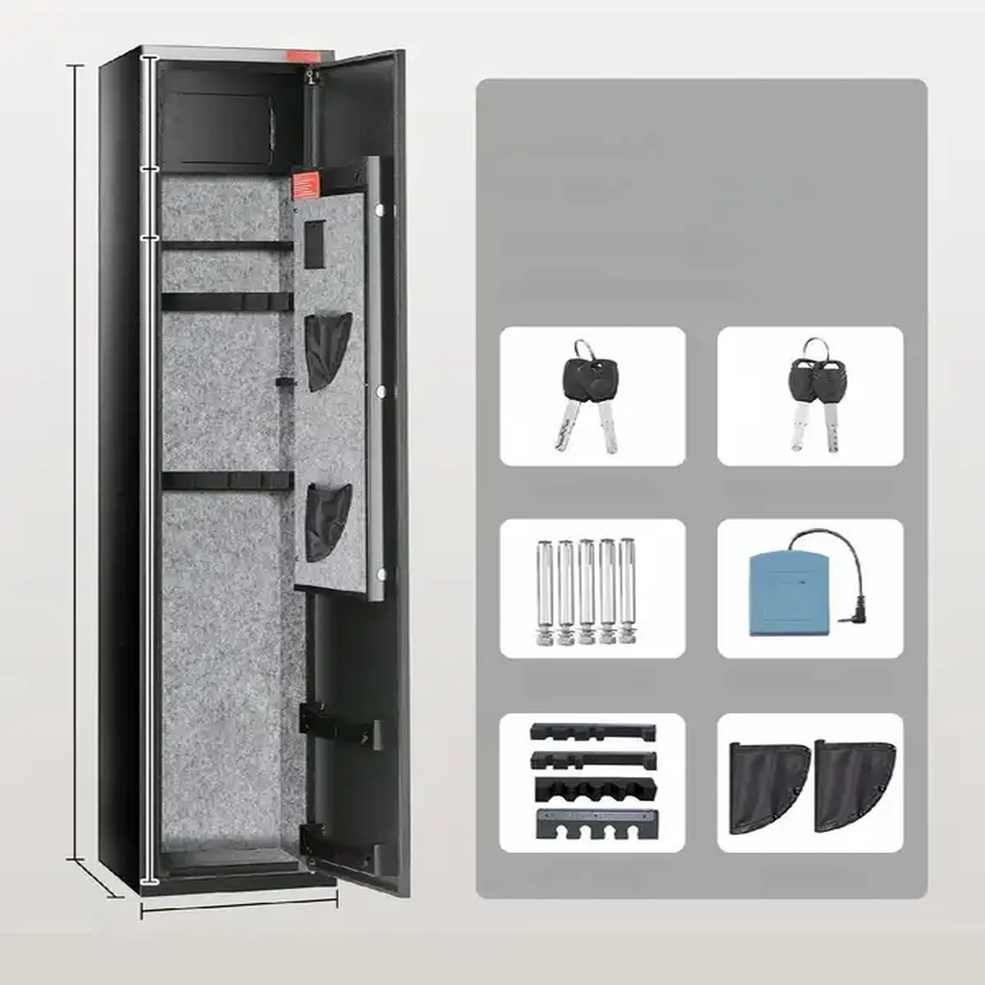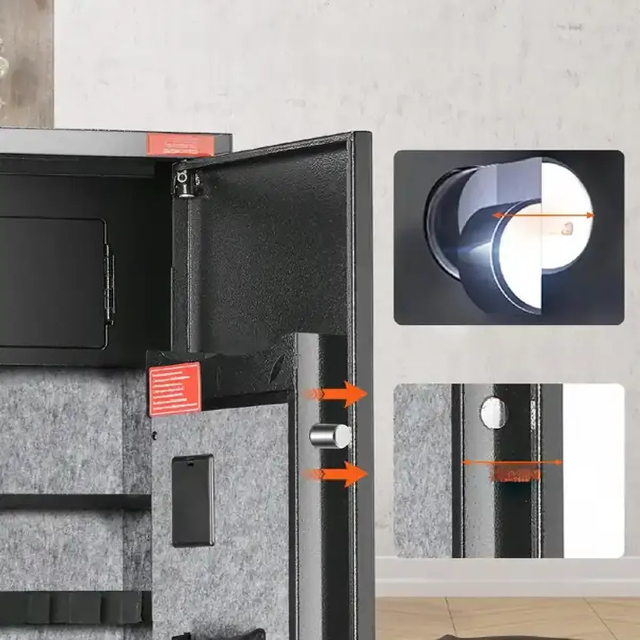 Zabezpiecz swoje cenne przedmioty z dużą szafą pancerną o pojemności 120 L! Wykonana z wysokowytrzymałej stali Q235 z drzwiami o grubości 1,8 mm i trzema ryglami, zapewnia solidną ochronę przed włamaniem. Wyposażona w inteligentną blokadę dotykową, system alarmowy i tryb cichy, gwarantuje bezpieczeństwo i wygodę. Idealna do domu, biura lub firmy!
