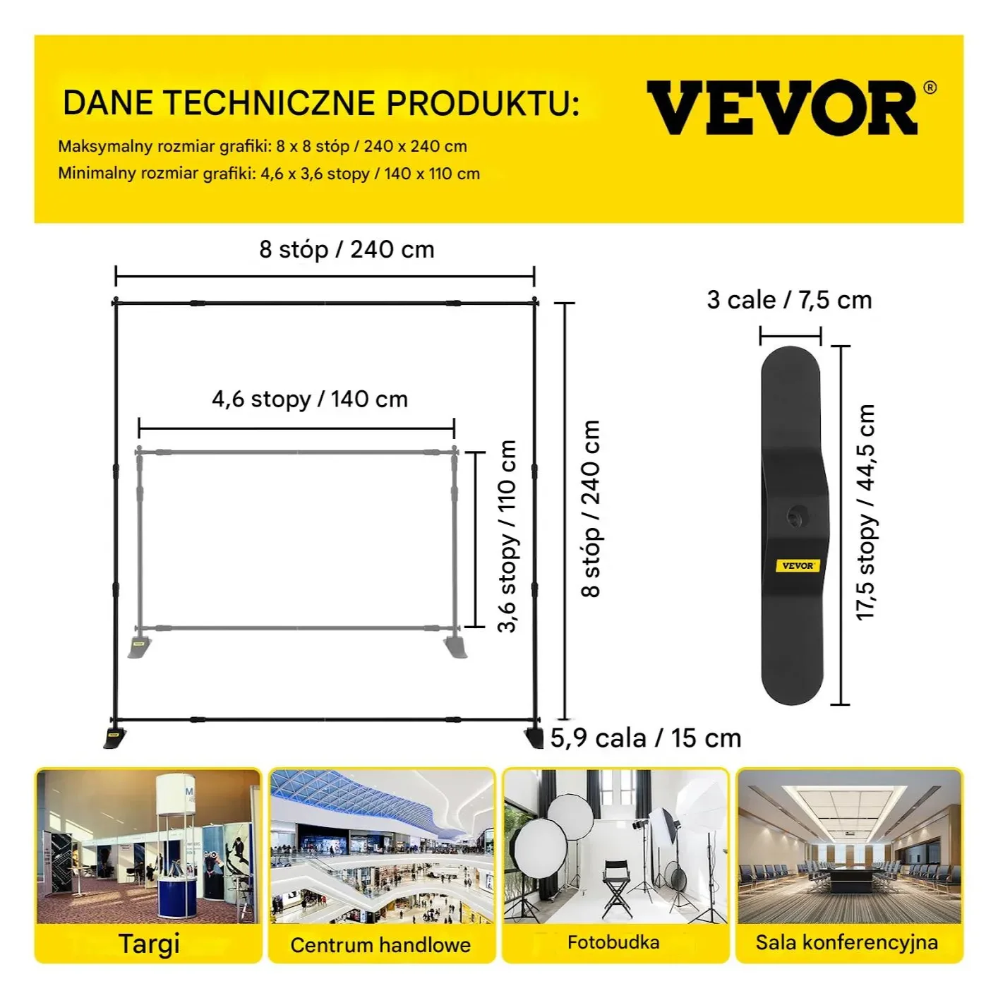 Szukasz profesjonalnego rozwiązania do prezentacji banerów lub tła na eventach? Stelaż regulowany na baner to idealny wybór! Dzięki wymiarom 240 x 240 cm i regulowanej wysokości oraz szerokości, ten stojak jest kompatybilny z banerami o różnych rozmiarach. Wykonany z wytrzymałego aluminium, jest lekki, stabilny i łatwy w montażu, co czyni go idealnym do użytku na targach, eventach, fotobudkach i innych imprezach.