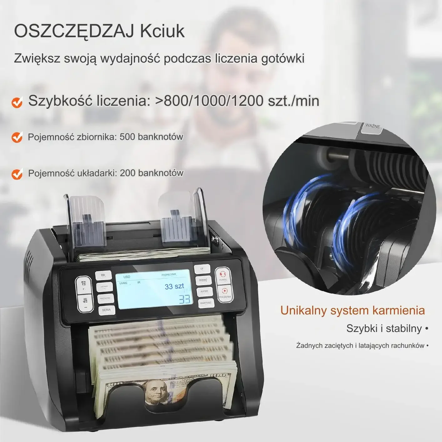 Liczarka do banknotów USD/EUR 1200 szt./min – bezpieczeństwo, wydajność i wszechstronność