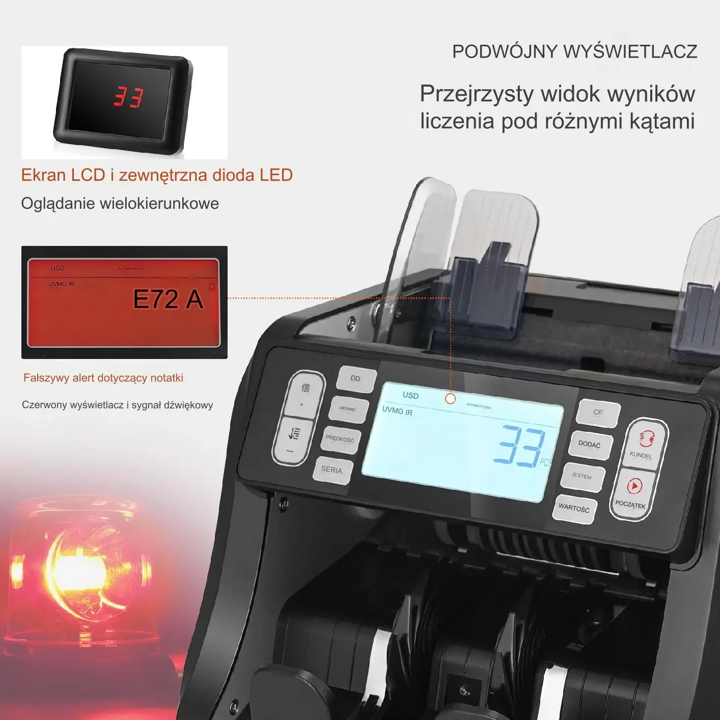 - ✅ Automatyczne wykrywanie: Półbanknoty, banknoty łańcuszkowe i podwójne – pewność autentyczności każdej sztuki.
