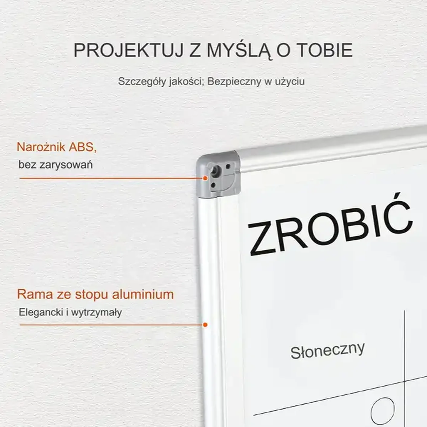 - ✅ Magnetyczna i suchościeralna: Umożliwia pisanie markerami suchościeralnymi i przypinanie notatek za pomocą magnesów.