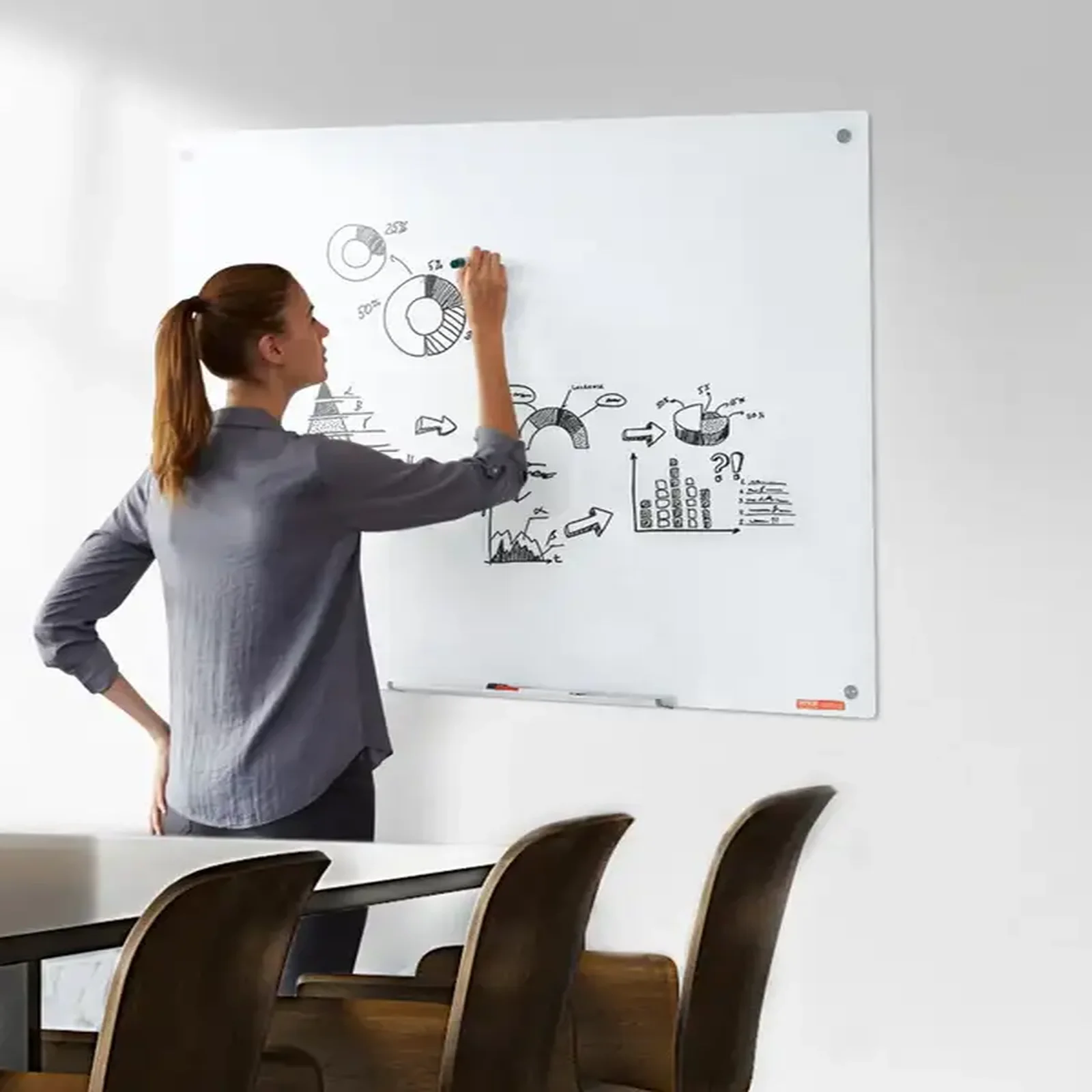 Odkryj harmonię funkcjonalności i nowoczesnego designu z tą imponującą, magnetyczną tablicą szklaną. Jej bezramowa konstrukcja i nieskazitelna biała powierzchnia ze szkła hartowanego tworzą wizualnie lekką, a jednocześnie dominującą formę, idealną do podkreślenia charakteru każdego wnętrza. Ciesz się niezrównaną płynnością pisania i bezproblemowym czyszczeniem – każda notatka znika bez śladu, pozostawiając powierzchnię gotową na nowe pomysły. Dzięki wzmocnionej funkcji magnetycznej, wszystkie kluczowe dokumenty i inspiracje pozostaną bezpiecznie na swoim miejscu. Ta tablica to nie tylko narzędzie do komunikacji, ale prawdziwe dzieło sztuki użytkowej, które usprawni Twoją pracę i nada elegancji otoczeniu.