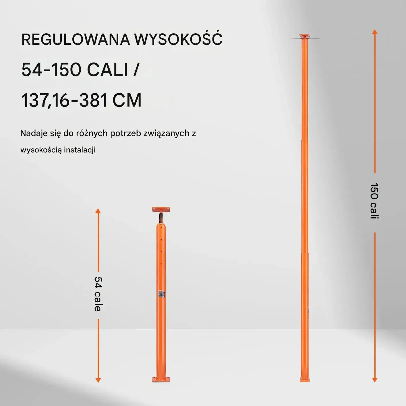 - ✅ Regulowana wysokość: Zakres 137 – 381 cm pozwala dopasować wysokość do różnych zastosowań