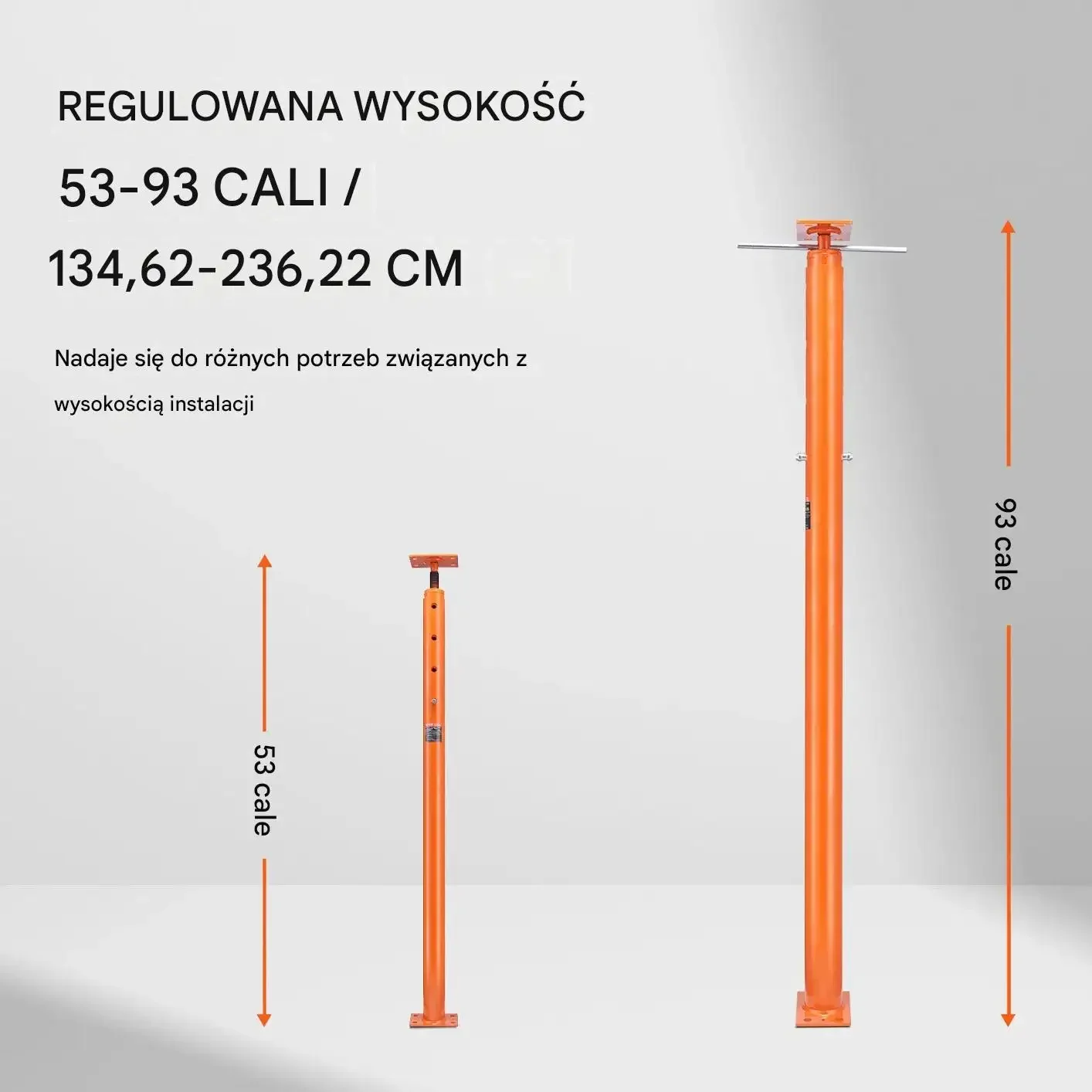 - ✅ Regulowana wysokość: Zakres 134,6 – 236,2 cm umożliwia precyzyjne dopasowanie do różnych konstrukcji