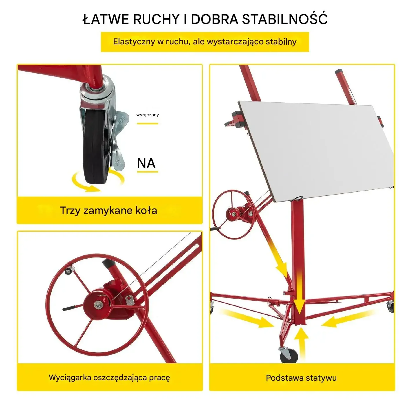 • ⭐ Stabilne i precyzyjne unoszenie różnych paneli i płyt