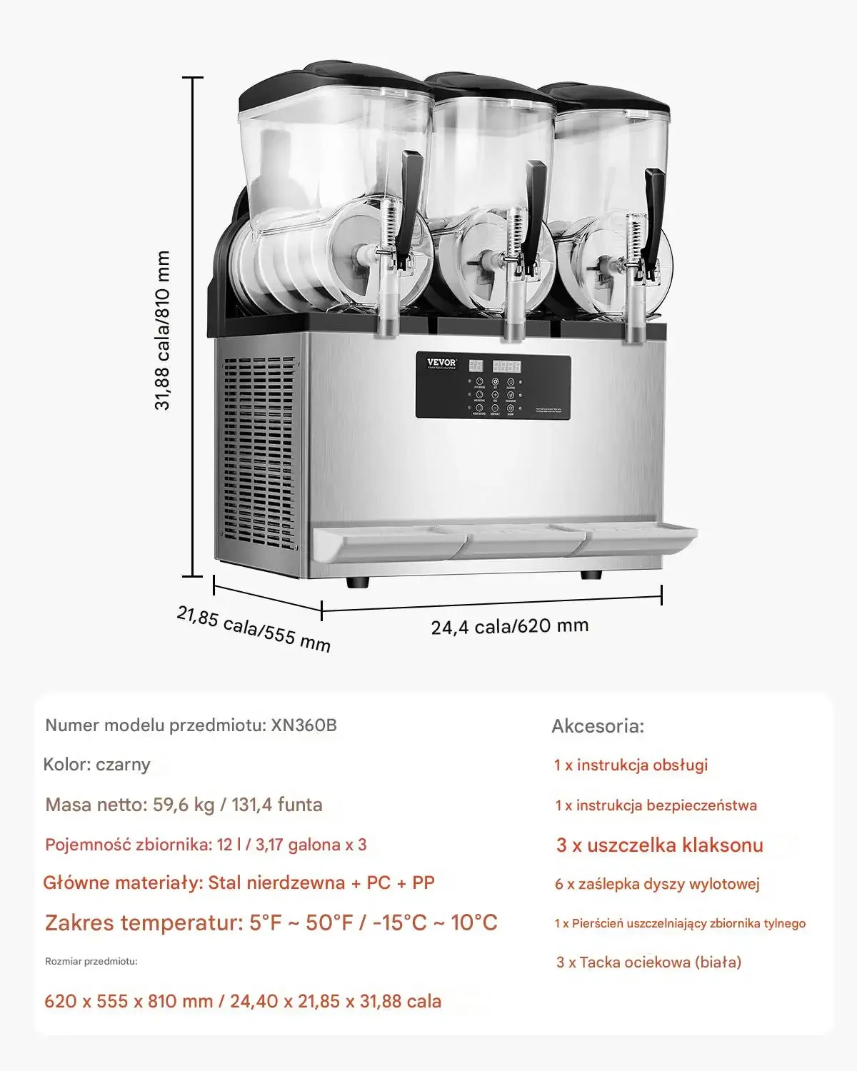 - Materiał zasobnika: stal nierdzewna 304