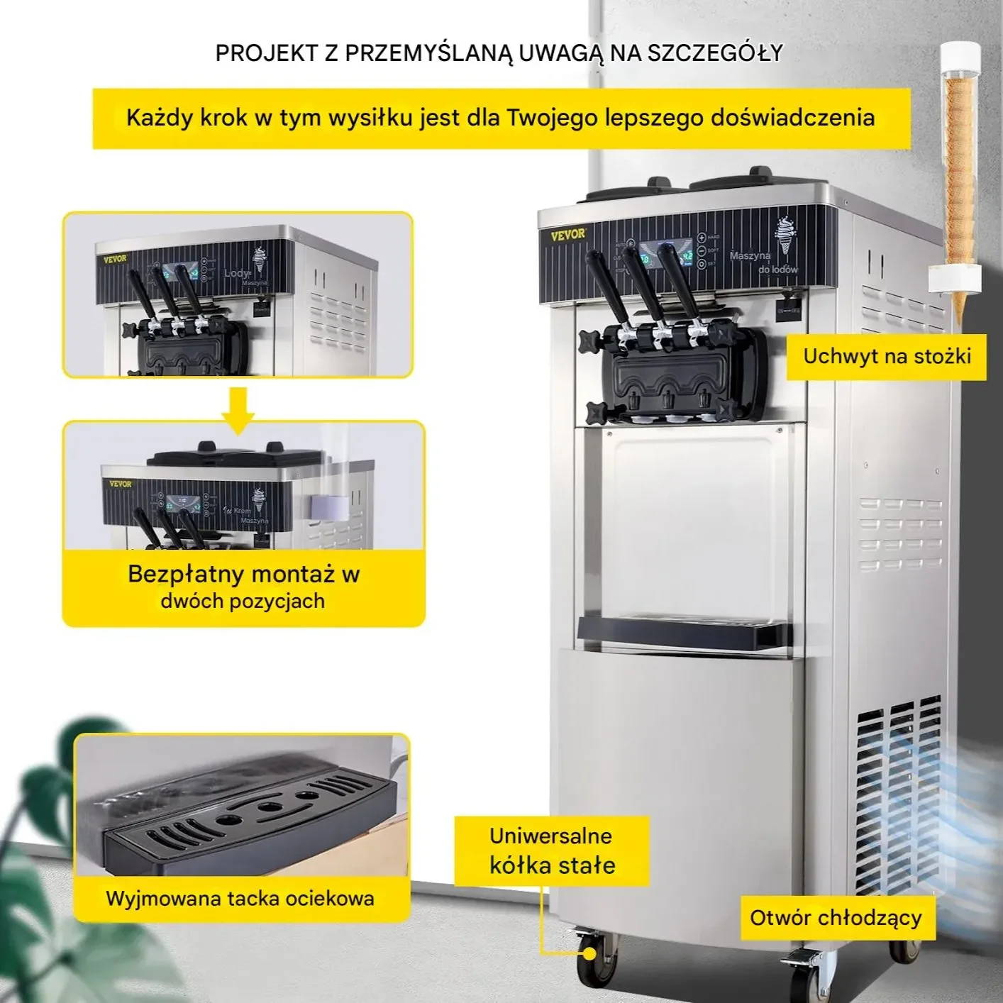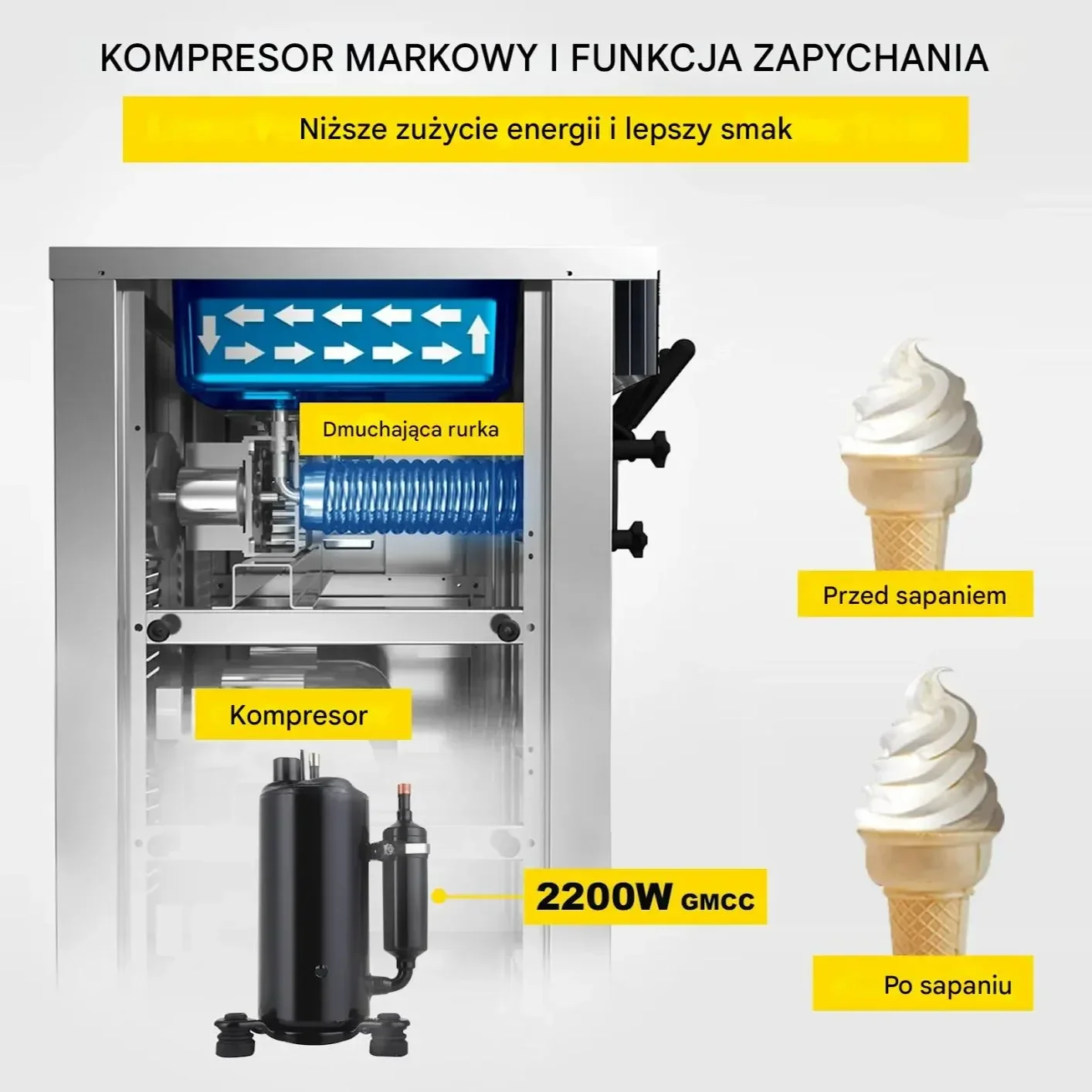 - ✅ Inteligentne sterowanie: Panel LCD do ustawiania czasu, temperatury i twardości lodów