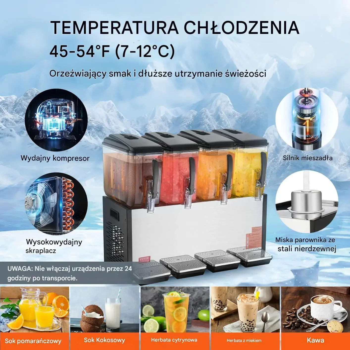 Profesjonalny Dyspenser do Napojów Chłodzonych 4x12L – Idealny do Gastronomii