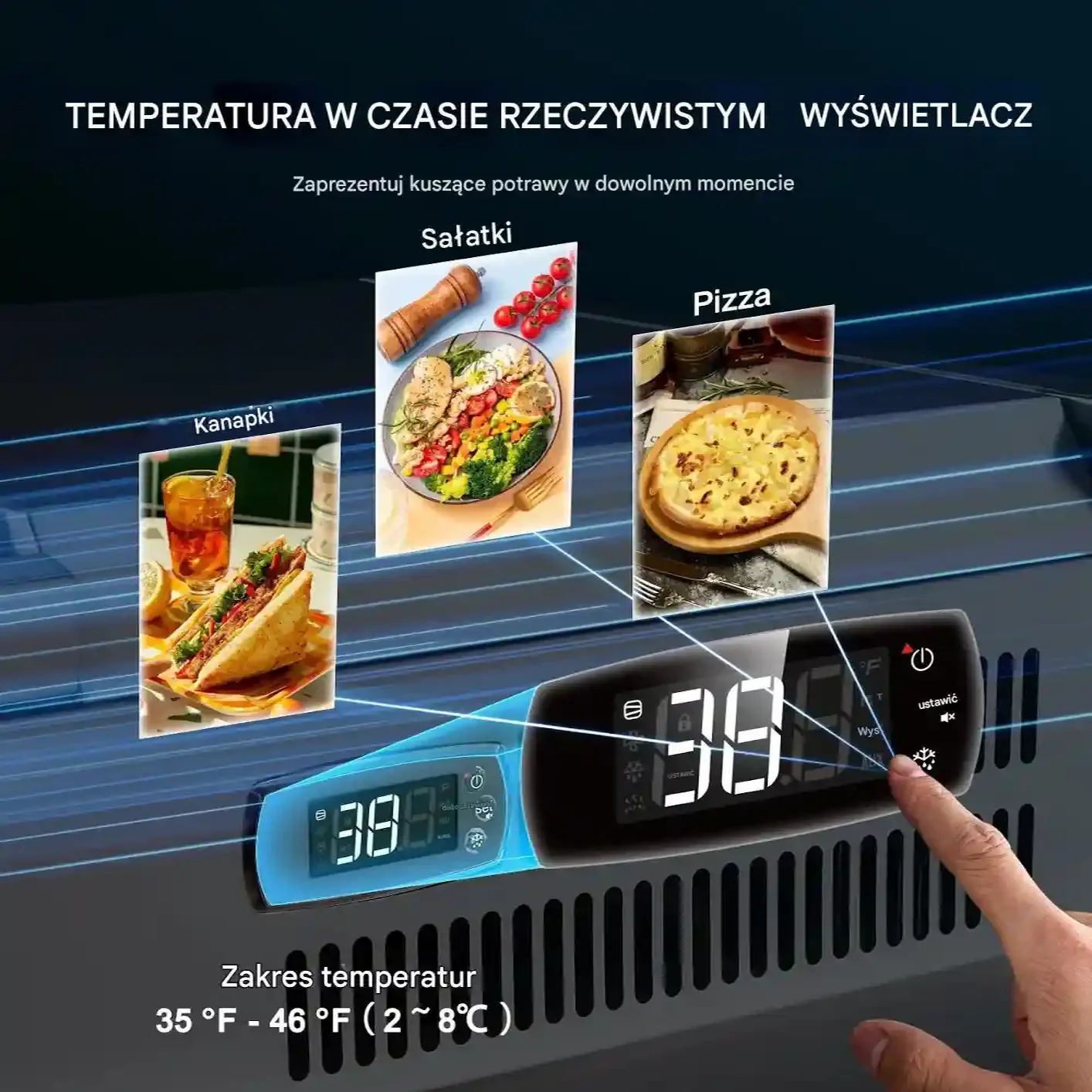 - ✅ Wydajne chłodzenie: Kompresor 140 W i czynnik chłodniczy R290 zapewniają utrzymanie temperatury od 2 do 8℃, zachowując świeżość i wartości odżywcze produktów