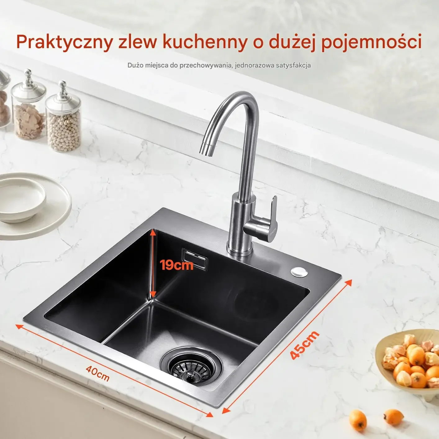 - ✅ Łatwa instalacja – montaż na górze bez przeróbek blatu czy szafek.