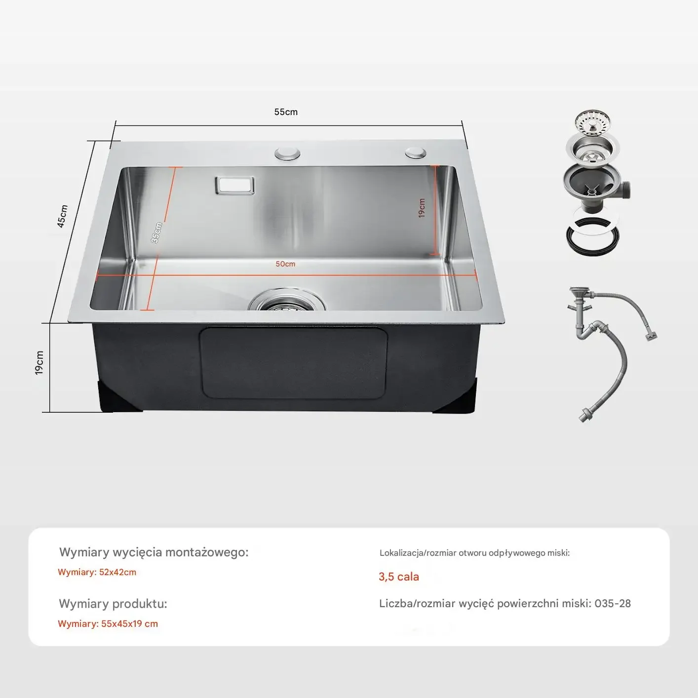 - ✅ Grubszy panel 3 mm – o 50% grubszy niż standardowe zlewy, gwarantuje wyjątkową trwałość.