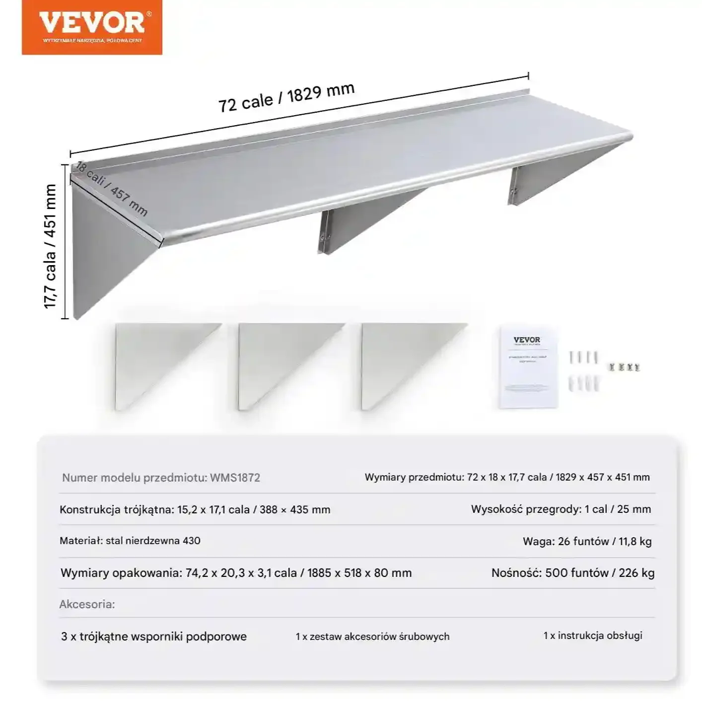Zorganizuj swoją przestrzeň jak profesjonalista dzięki tej wytrzymałej, wiszącej półce ze stali nierdzewnej. To idealne rozwiązanie dla gastronomii, domu, garażu czy warsztatu, które łączy w sobie potężną nośność, higienę i elegancki, nowoczesny wygląd. Zapomnij o bałaganie i braku miejsca na blatach – ta półka pozwoli Ci optymalnie wykorzystać każdą ścianę.