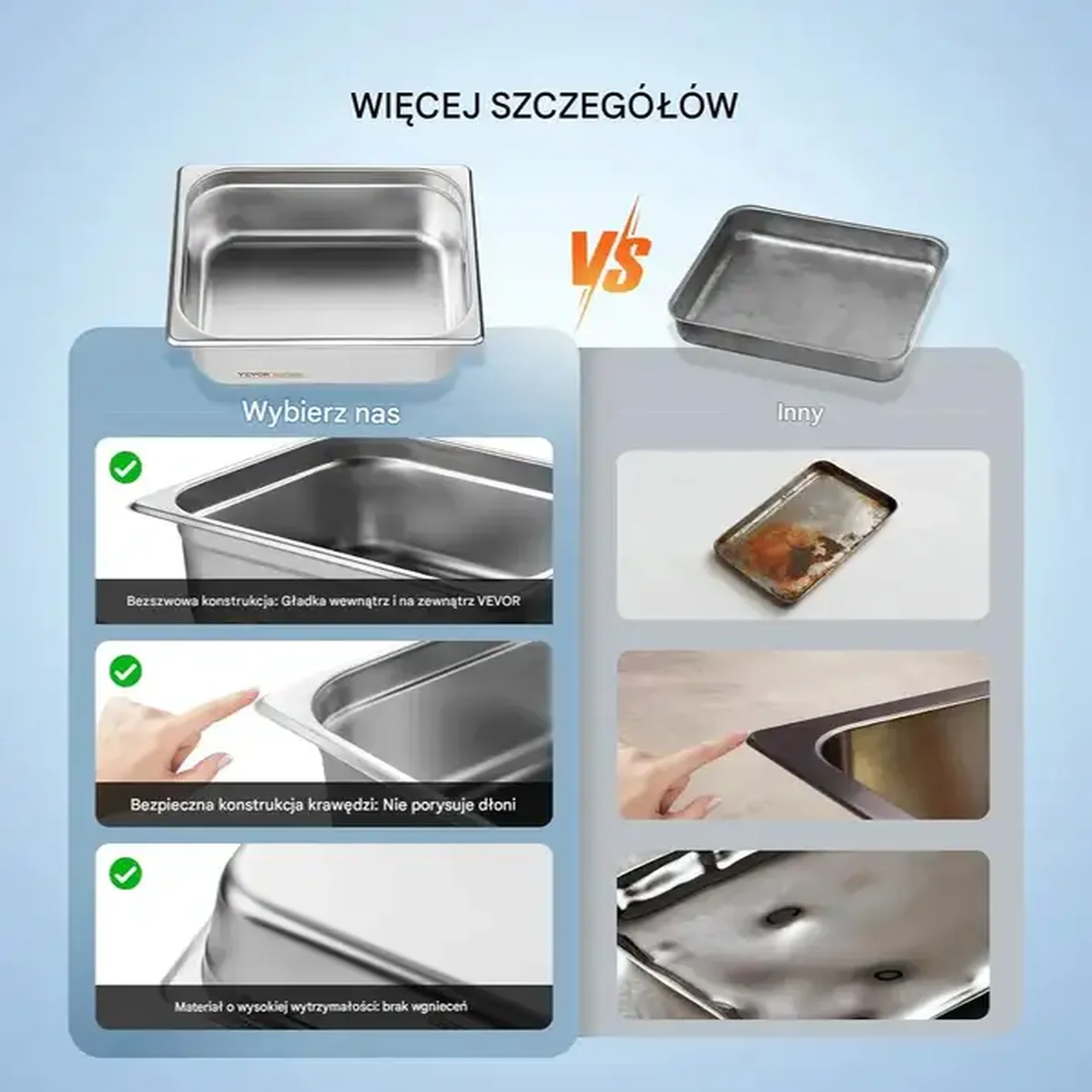 - ✅ Gładkie wykończenie: Zintegrowana konstrukcja bez spawów, zaokrąglone krawędzie chronią dłonie przed skaleczeniami