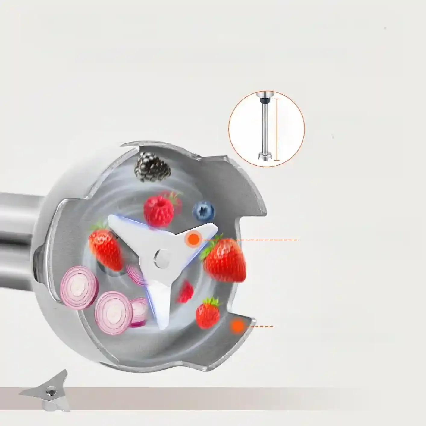 • Wszechstronne zastosowanie: Idealny do przygotowywania zup kremowych, sosów, puree, ciast, koktajli i wielu innych potraw, zarówno w dużych garnkach, jak i mniejszych pojemnikach.