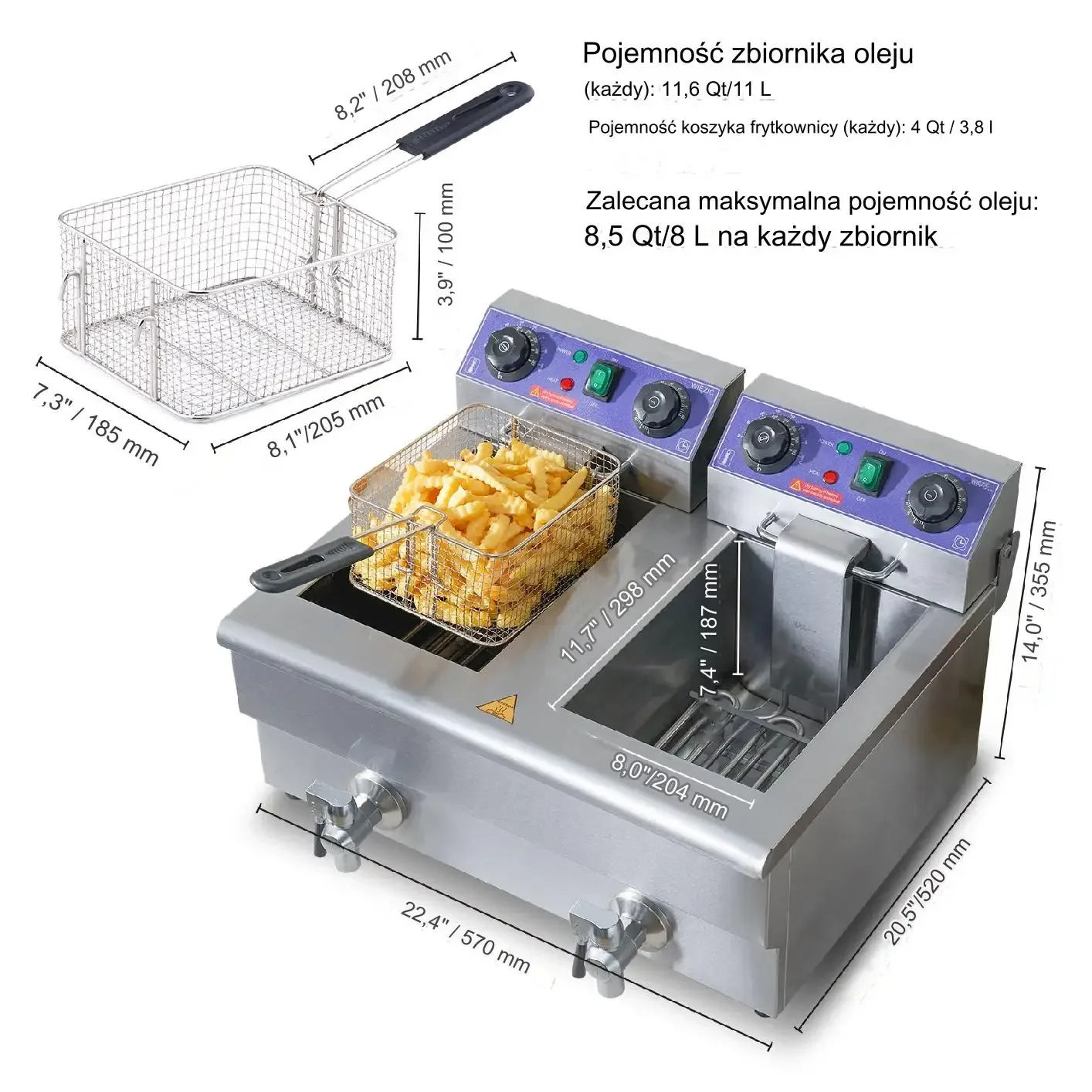 O średnicy 375 mm i wysokości 365 mm, ten pojemnik na tłuszcz do frytkownic ma naprawdę dużą pojemność! Pożegnaj się z częstym opróżnianiem kosza na śmieci — pomieści aż 30 litra oleju! Dodatkowo, dołączamy praktyczną torbę filtrującą, która usunie wszelkie zanieczyszczenia, utrzymując olej świeżym i czystym przez dłużej.