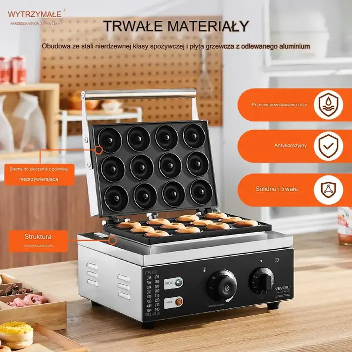• ✅ Nieprzywierająca powłoka teflonowa ułatwia czyszczenie i zapewnia idealny kształt pączków