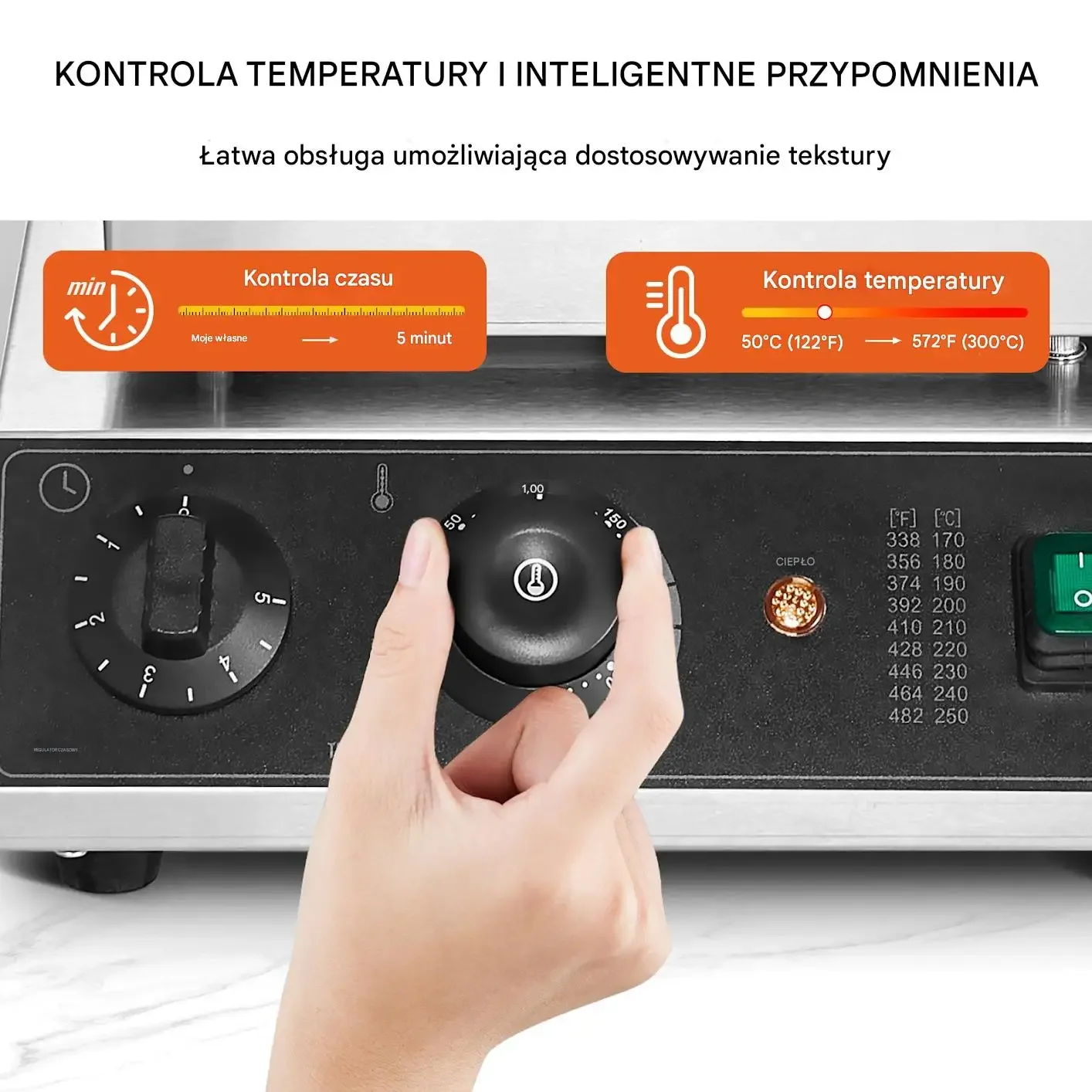 - ➡️ Pełna kontrola nad procesem wypieku dzięki regulacji temperatury