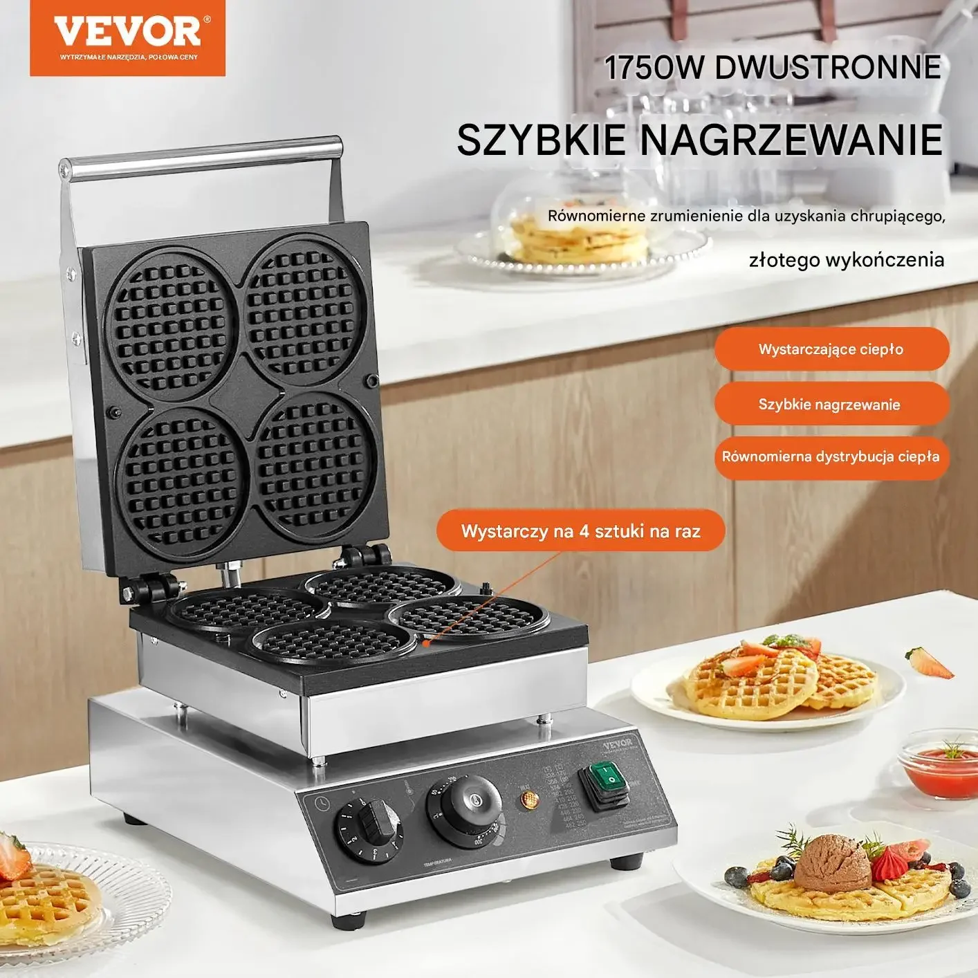 - ✅ Gofrownica 4-plackowa 1750 W