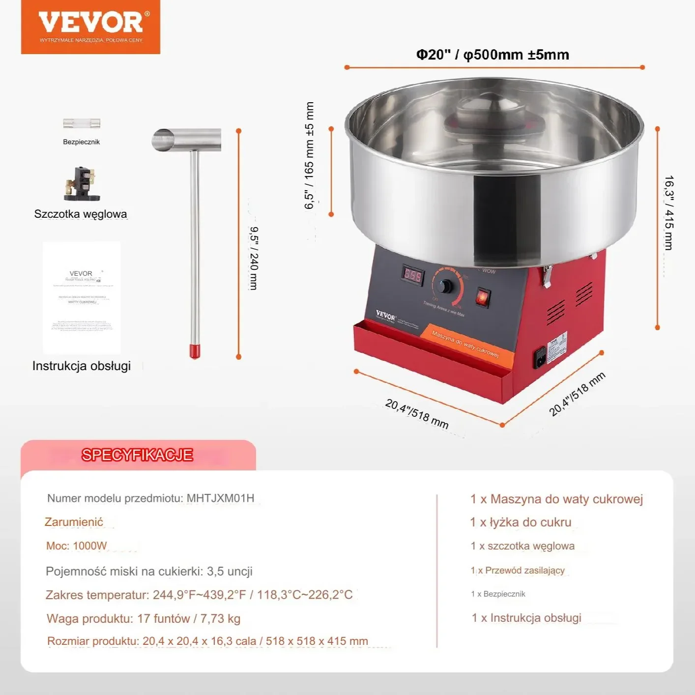 Ta maszyna do waty cukrowej pozwala na użycie tradycyjnych cukrów do nitkowania, cukrów mlecznych, kostek owocowych lub dowolnych ulubionych twardych cukierków do przygotowania pysznych bawełnianych cukierków. Dzięki kompaktowym rozmiarom nadaje się do użytku na blacie i jest idealna na karnawały, festiwale, przyjęcia urodzinowe i imprezy sportowe.