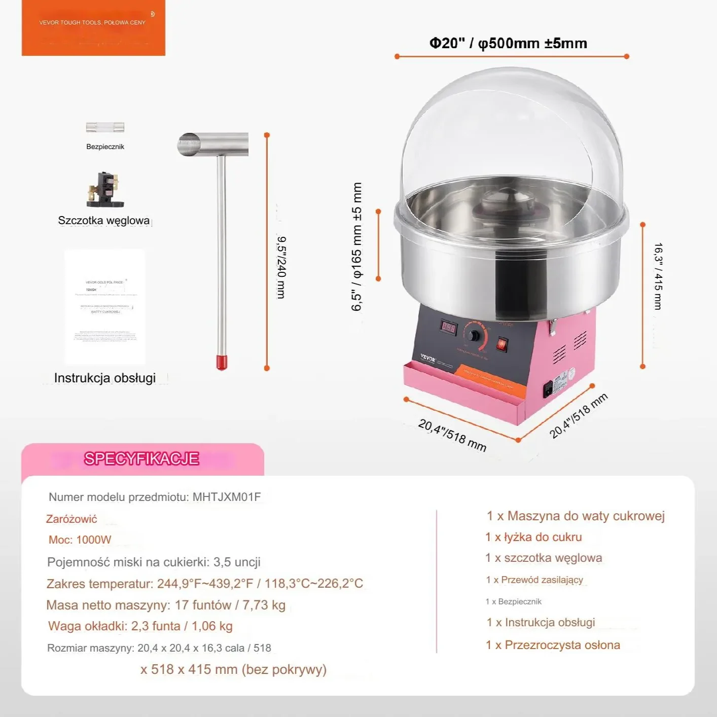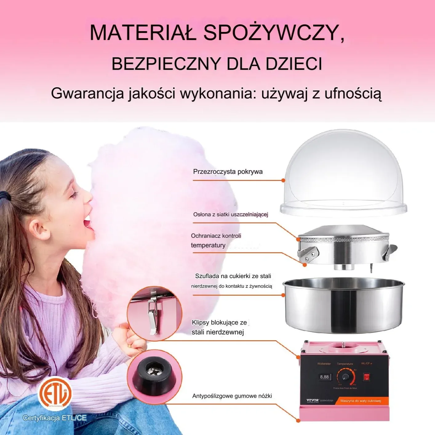 Elektryczna Maszyna do Waty Cukrowej Różowa